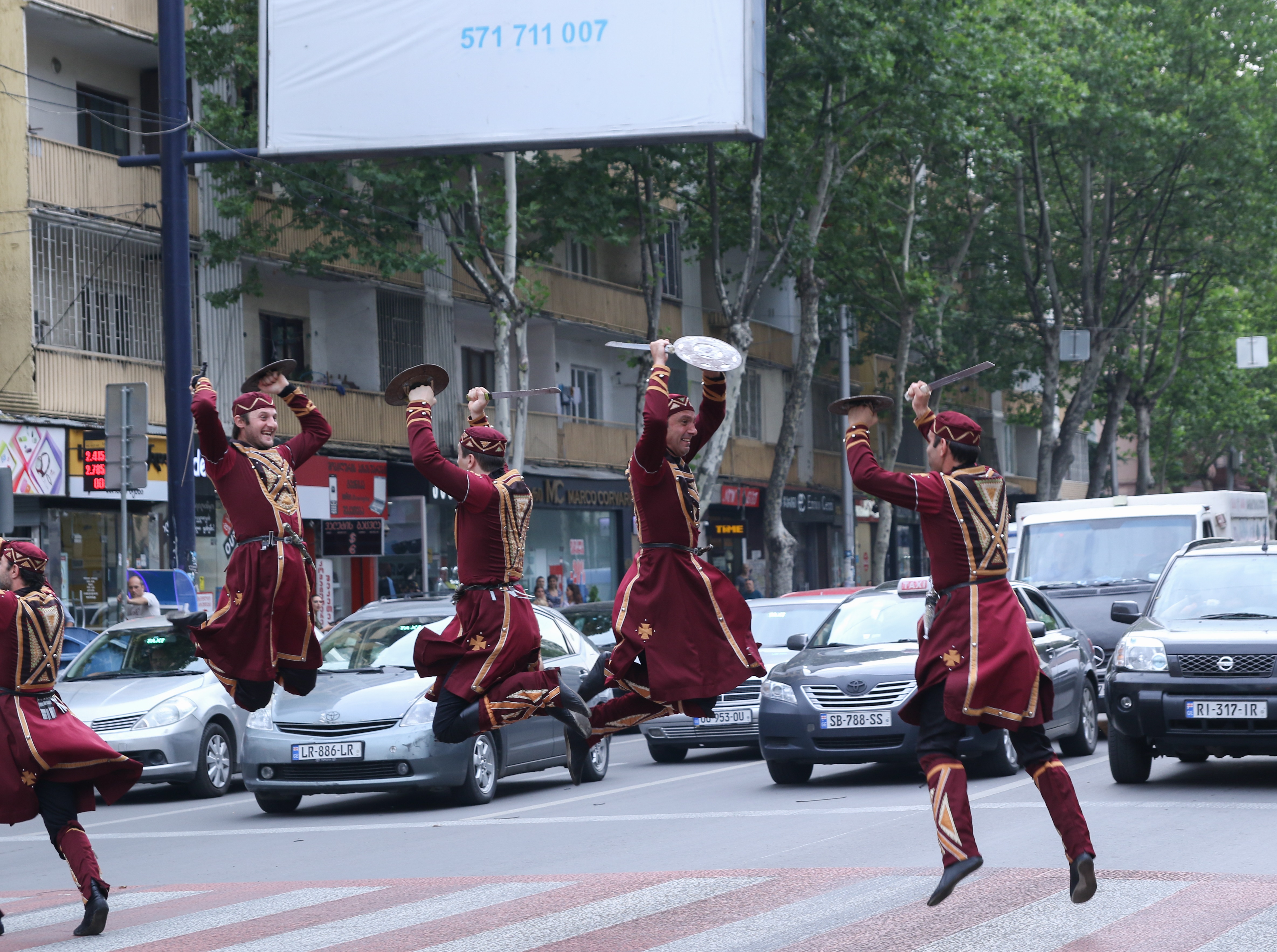 13 ივლისს, 18:00 საათზე პეკინისა და საბურთალოს ქუჩების გადაკვეთაზე არსებულ გადასასვლელზე (ზებრაზე)ქართული ბრძოლის ინსცენირება გაიმართა. ერთი საათის განმავლობაში შუქნიშანზე წითელი ფერის ანთებისას ანსამბლ „რუსთავის“ მოცეკვავეები ეროვნულ სამოსში ასრულებდნენ ცეკვა ფარიკაობასა და წარმოადგენდნენ ქართულ საბრძოლო ხელოვნებას.