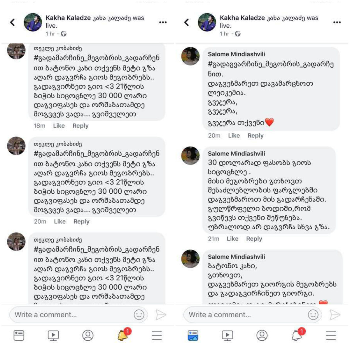 "თბილისის მერის ვიდეოდიალოგის დროს მსგავსი შინაარსის ბევრი მესიჯი დაიწერა. ფეისბუქ ლაივის დასრულების შემდეგ კახა კალაძე სოციალური სამსახურის უფროსს დაუკავშირდა და გაირკვა, რომ მერია გიორგის 20 000 ლარით დაეხმარება" - დაწერა თოქმაჯიშვილმა.