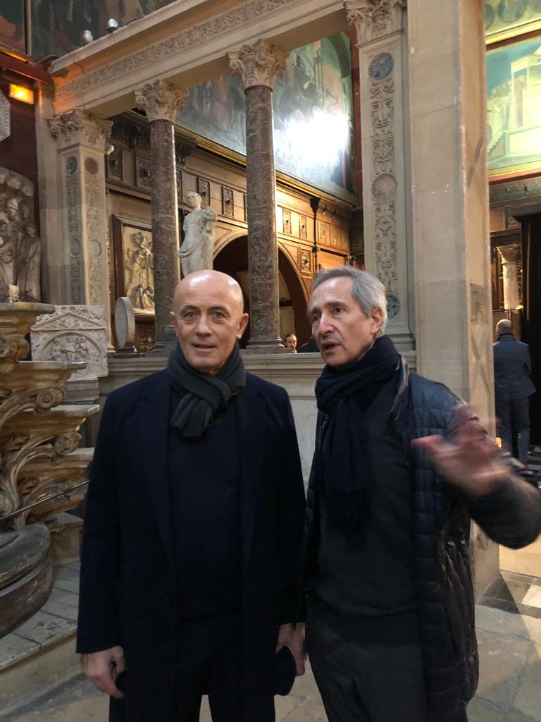 გერლენების პრემიის ცერემონიალზე. ჟიურის წევრები შალვა ბრეუსი და პომპიდუს მუზეუმის დირექტორი ბერნარ ბლისტენი.