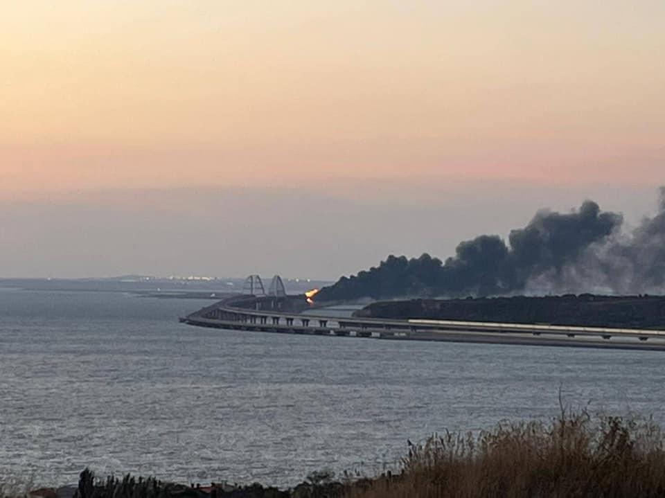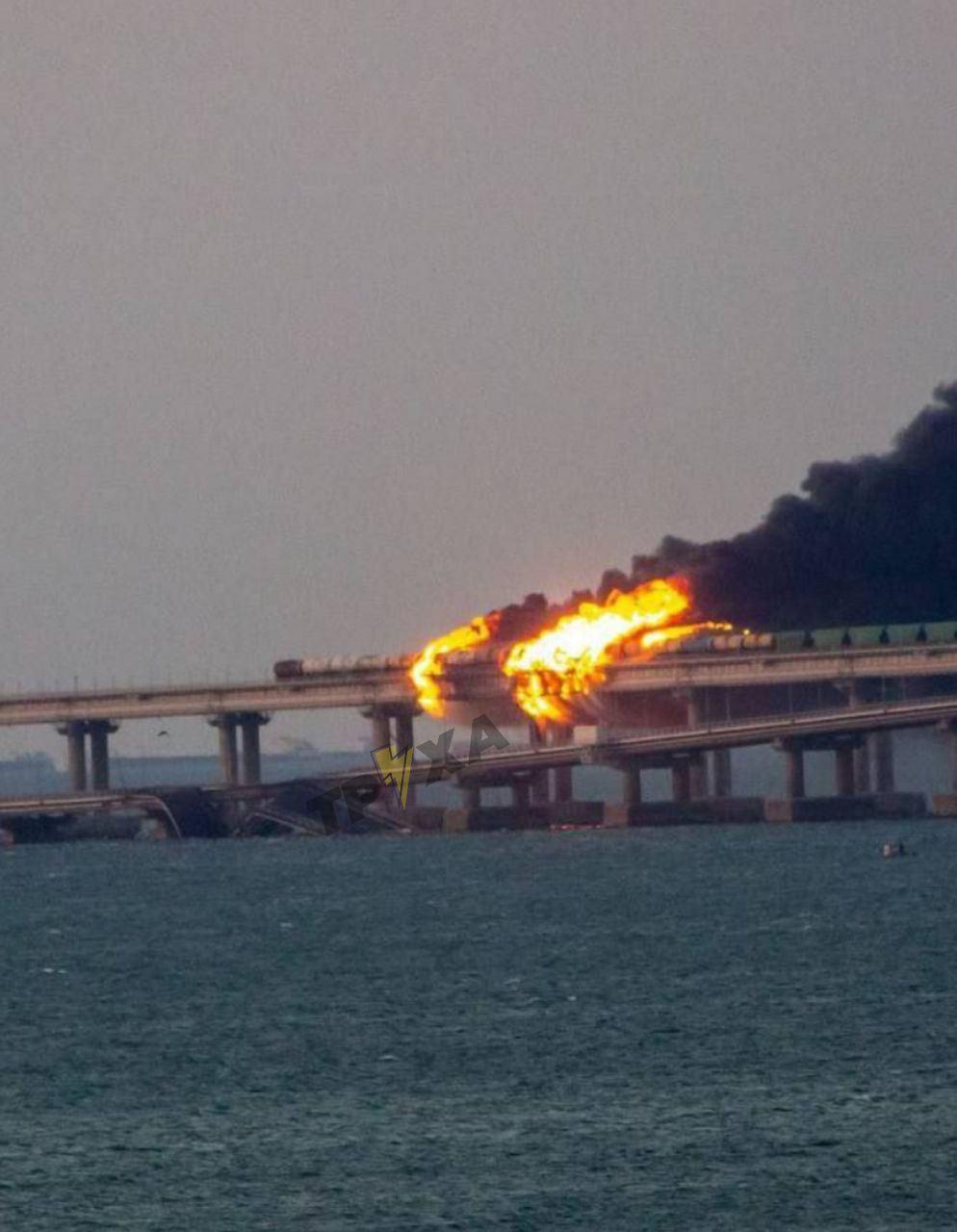 ყირიმის ხიდის სარკინიგზო განშტოებაზე დილით ძლიერი ხანძარი 06:07 საათზე გაჩნდა. ხანძრის შედეგად ხიდის საავტომობილო მონაკვეთი ნაწილობრივ ჩამოინგრა და წყალშია.