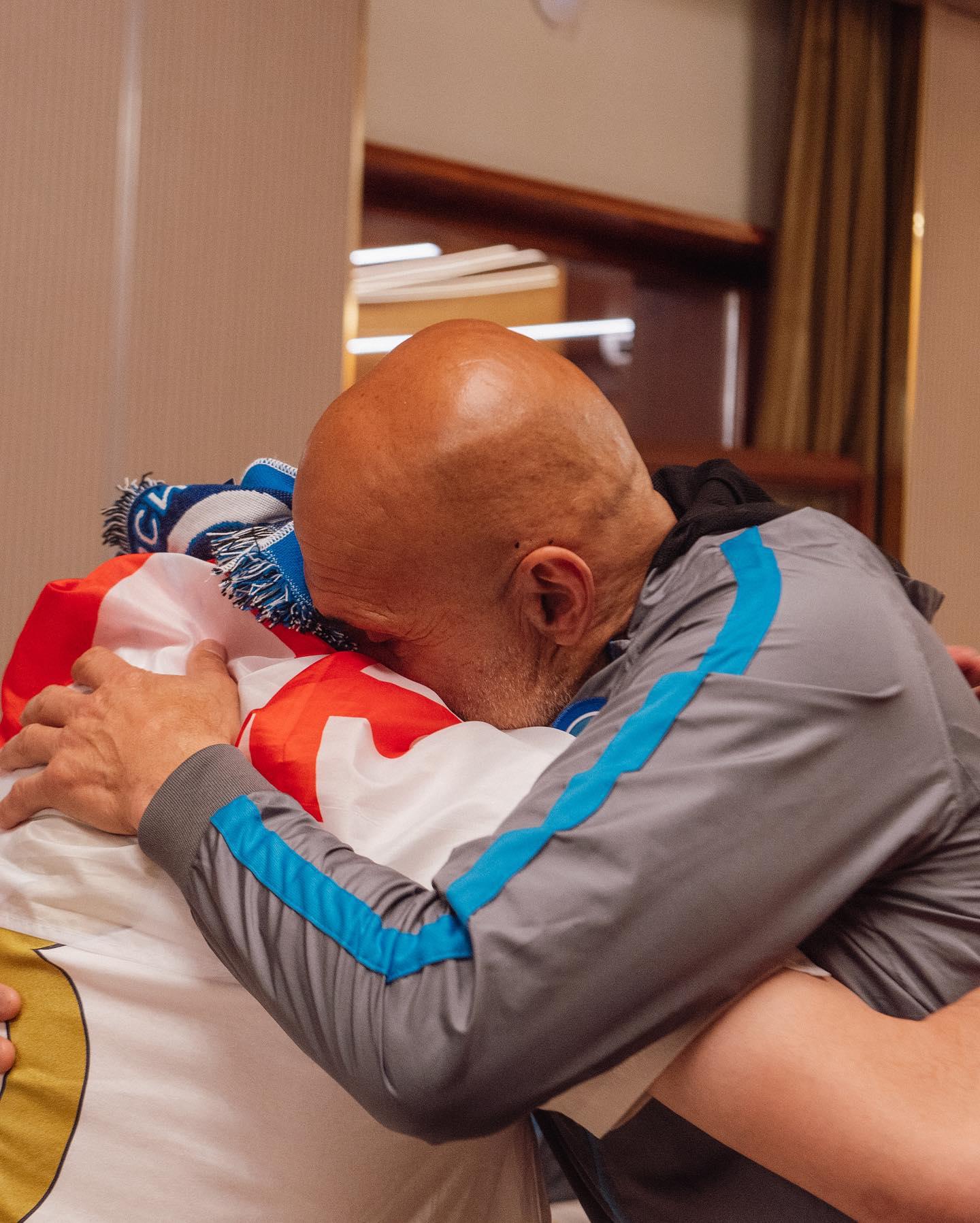 საკუთარი გუნდის წარმატებით გახარებული სპალეტი ემოციებს ვერ მალავს. ის ულოცავს გამარჯვებას და ეხუტება ფეხბურთელებს, მათ შორის ხვიჩა კვარაცხელიას.