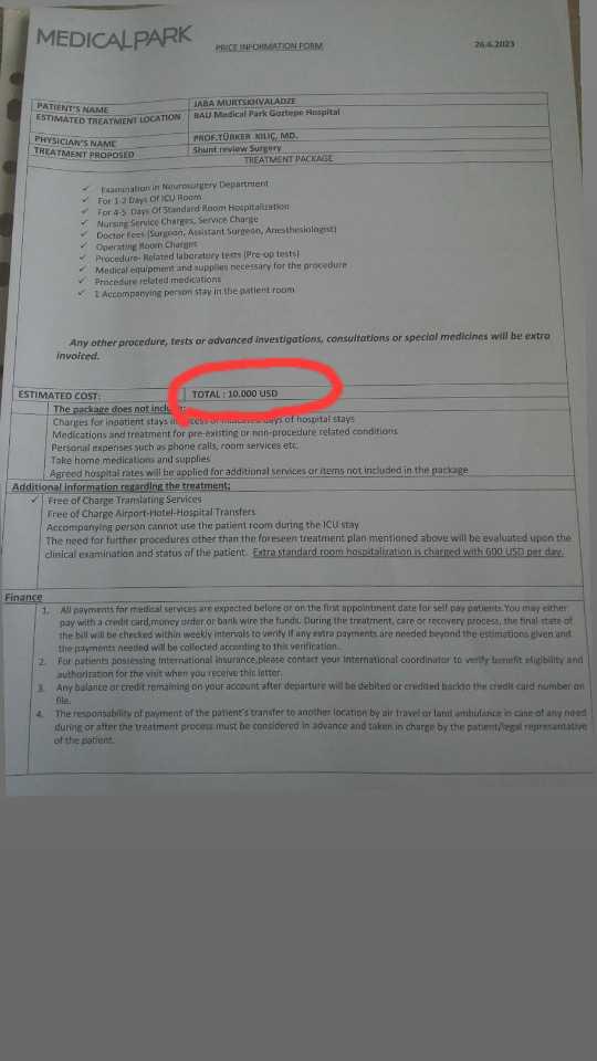 - როგორც ადრე გითხარით, ვაპირებდით "აჯიბადემში“ მკურნალობას, რომელმაც უარი გვითხრა. სამაგიეროდ, სტამბოლიდან კლინიკა "მედიქალ პარკისგან“ მოვიღეთ ანგარიშფაქტურა, რომელიც მკურნალობას გვთავაზობს. უარის გამო გულდაწყვეტილები ვიყავით, მაგრამ ერთი მხრივ კარგიცაა, მათ არ ჰქონდათ შესაბამისი გამოცდილება. დიდად არც მინდოდა, ჩემი შვილი იქ საცდელი კურდღელივით პირველი პაციენტი ყოფილიყო. ახლა, რადგან ამ კლინიკამ თავის თავზე აიღო მკურნალობის ამ მეთოდით (გამა სხივები) თავში არსებული კისტური წარმონაქმნების დაშლა, იმედებიც გაჩნდა. როგორც გაირკვა, "მედიქალ პარკს“ ამ მიმართულებით მრავალწლიანი გამოცდილება აქვს.