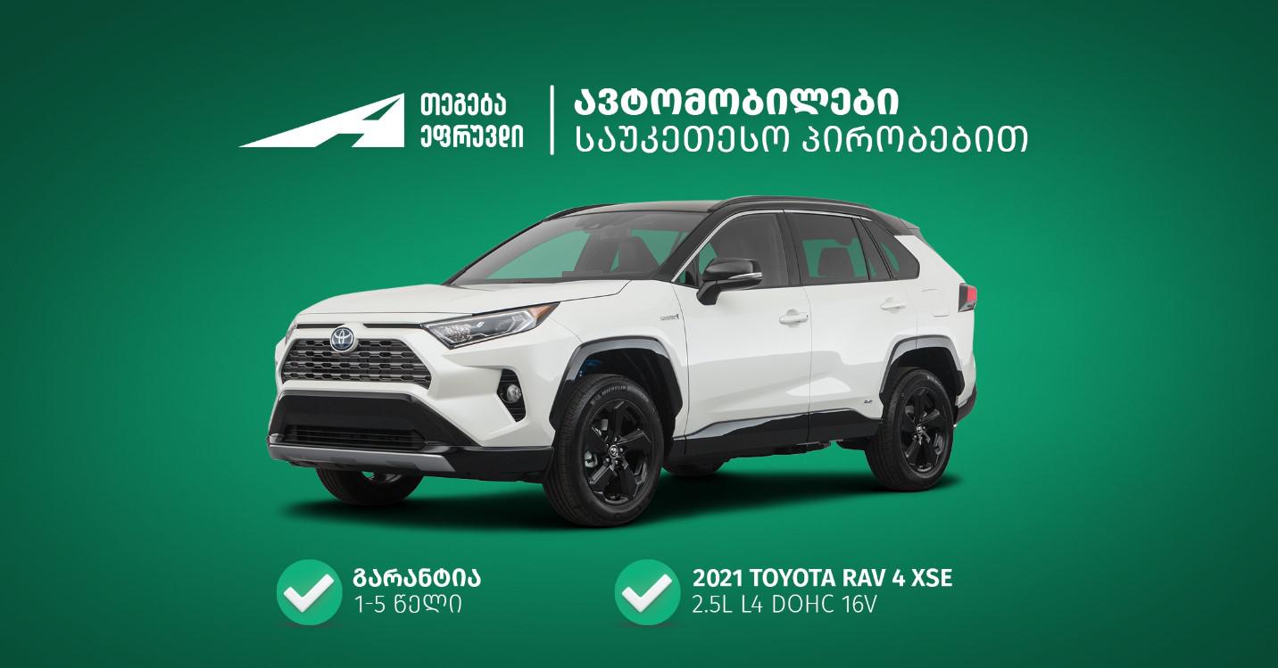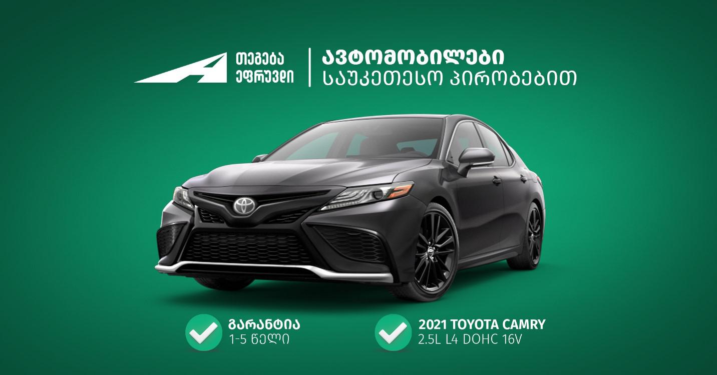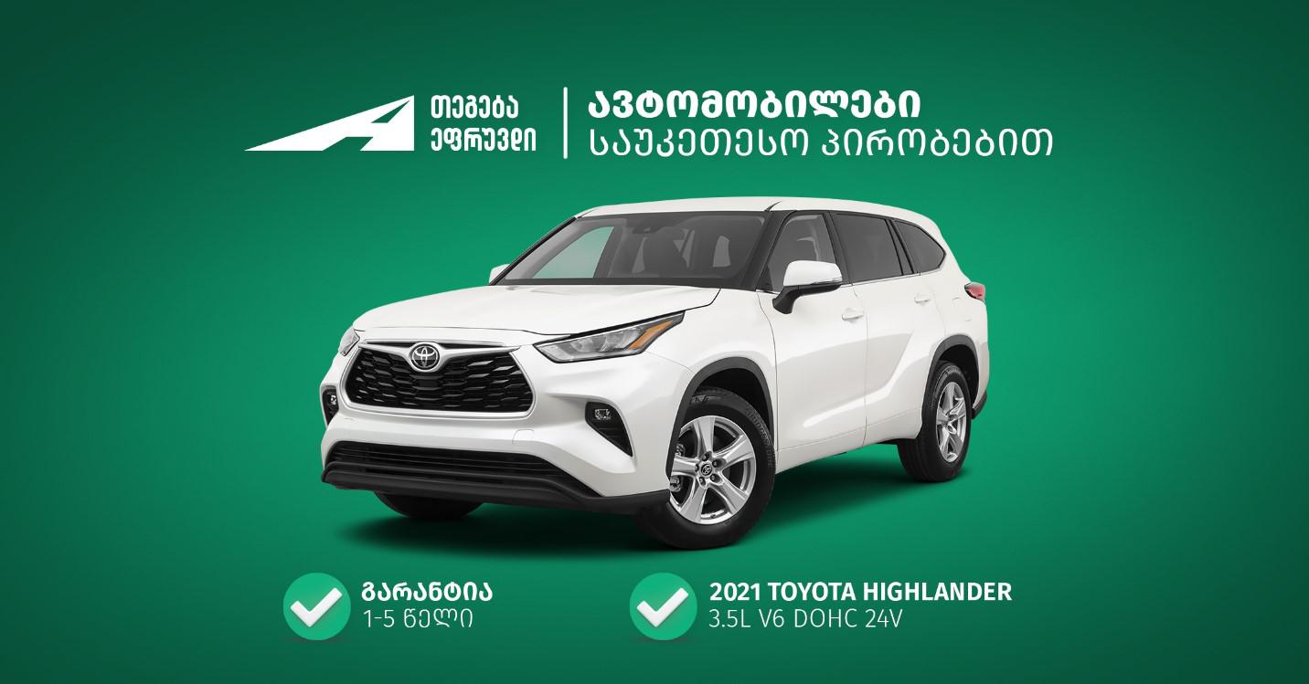 ტოიოტას მეორადი ავტომობილები Tegeta Approved-ზე საკმაოდ პოპულარულია. პლატფორმაზე შეხვდებით ტოიოტას მოთხოვნად მოდელებს: Toyota camry-ს 2021 წლის მოდელს, TOYOTA RAV 4-ის 2022 წლის ჰიბრიდულ ვერსიას ან თუნდაც Toyota highlander-ის მოდელს 3.5L V6 DOHC 24V ძრავით და სხვა.