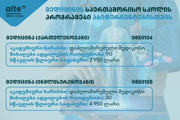 პროგრამის შესახებ დეტალური ინფორმაცია შეგიძლიათ იხილოთ ბმულზე - https://alte.edu.ge/ka/program/meditsina-qartulenovani.