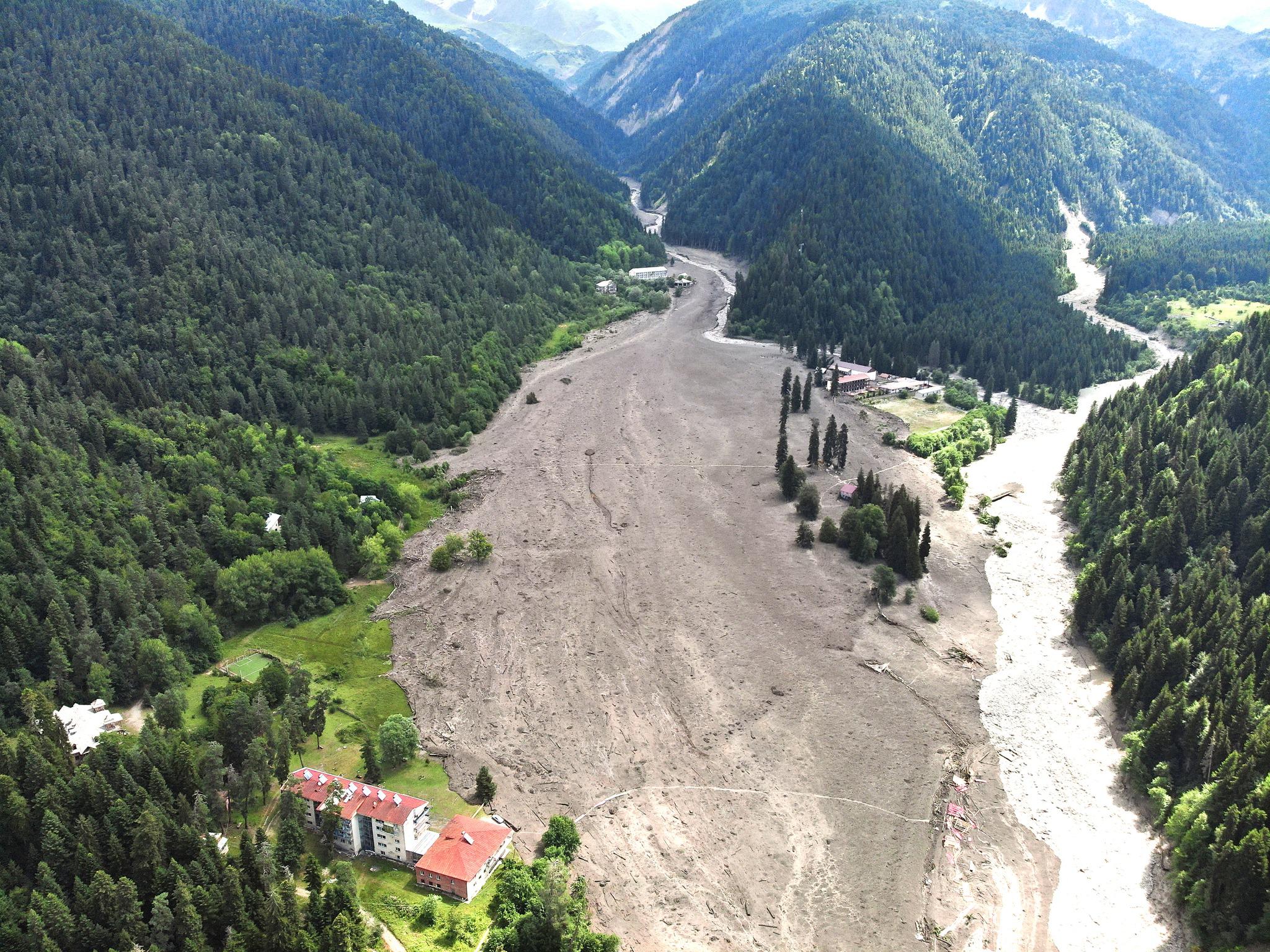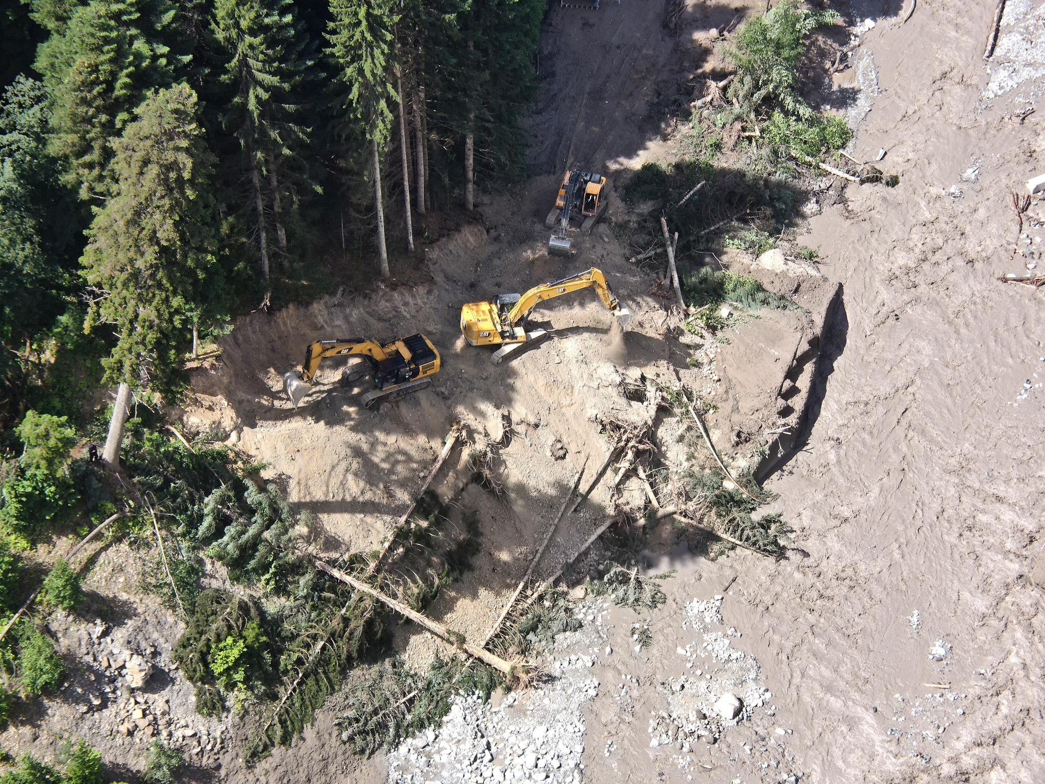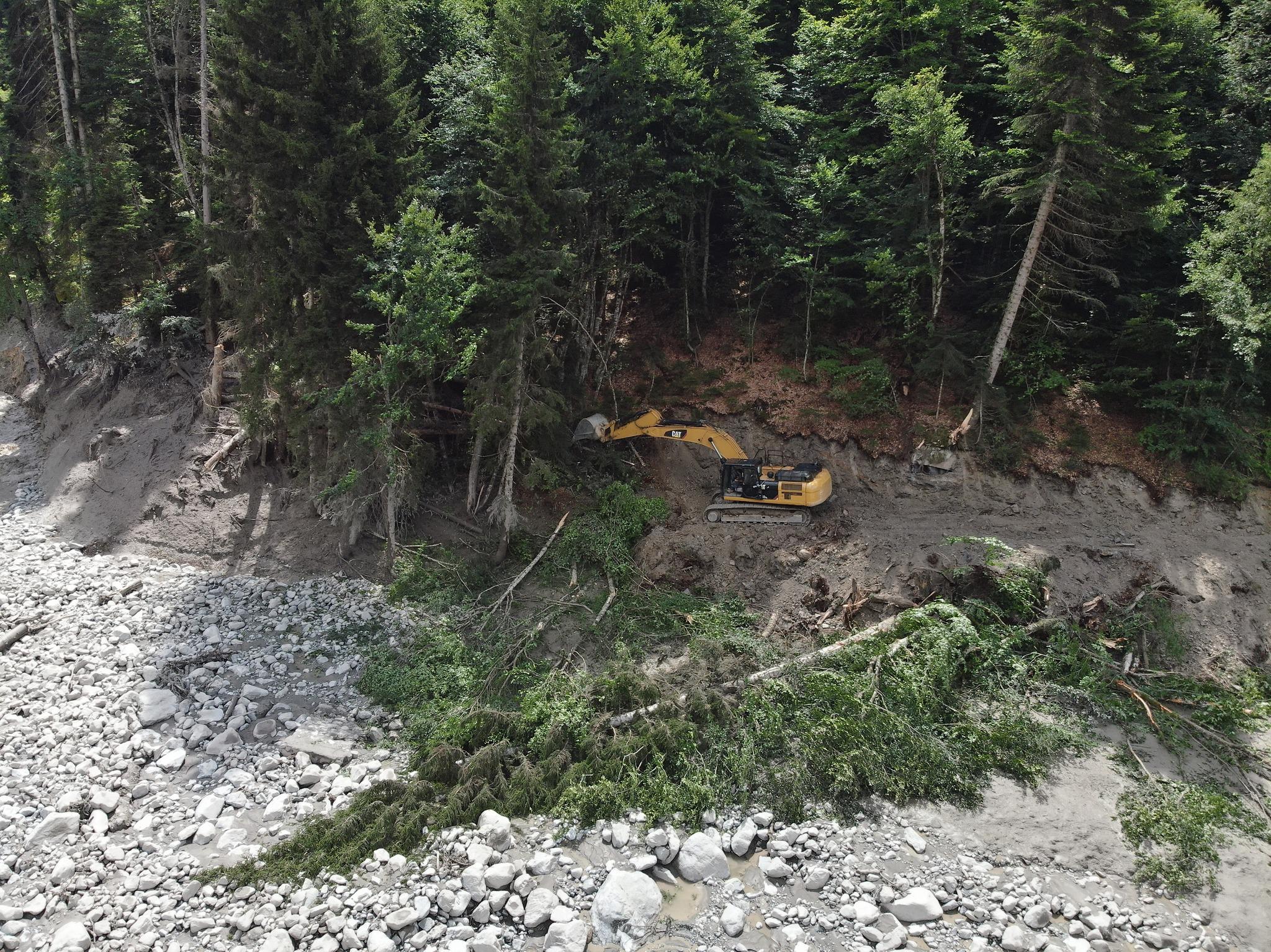 გაიწმინდა შესასვლელები და მიმდინარეობს დროებითი გზების მოწყობა, სტიქიის ზონასთან კომუნიკაციის აღსადგენად. სამუშაოები მიმდინარეობს უშუალოდ მდინარის კალაპოტშიც. ადგილზე მობილიზებულია 25 ერთეული ტექნიკა და დღის განმავლობაში კიდევ დაემატება მძიმე ტექნიკა.