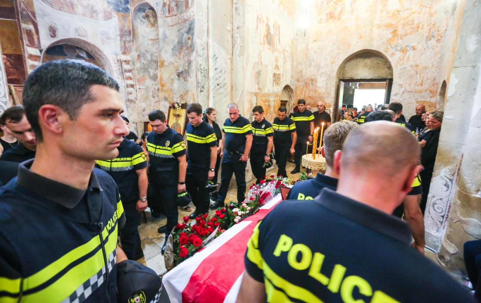 სამსახურებრივი მოვალეობის შესრულების დროს დაღუპული პოლიციელი უკანასკნელ გზაზე გააცილეს შინაგან საქმეთა მინისტრის მოვალეობის შემსრულებელმა - შალვა ბედოიძემ, მინისტრის მოადგილეებმა - გიორგი ბუთხუზმა, იოსებ ჭელიძემ, ალექსანდრე დარახველიძემ, ასევე, სამინისტროს სხვადასხვა დანაყოფის ხელმძღვანელმა პირებმა, პარლამენტის თავმჯდომარემ, ადგილობრივი ხელისუფლების წარმომადგენლებმა, გარდაცვლილი პოლიციელის კოლეგებმა და ახლობლებმა. საპატიო ყარაულმა გარდაცვლილის ხსოვნას პატივი საგანგებო ზალპით მიაგო, დაკრძალვის შემდეგ კი მის ოჯახის წევრებს საქართველოს სახელმწიფო დროშა გადასცა.