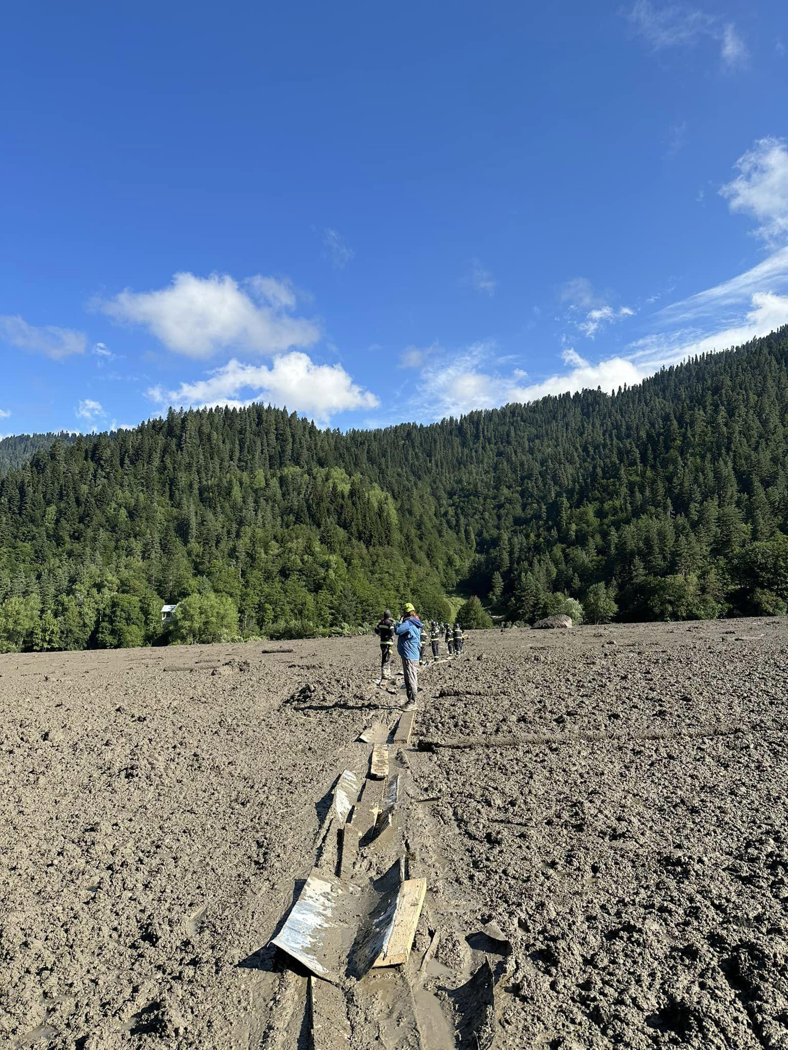 იმ მშვიდობით გადარჩენილებს შორის, ერთ-ერთს დრონი ჰქონდა, ააფრინა და კადრებით გაირკვა, რომ მდინარის ხეობაში 7 ადამიანი იმყოფებოდა. ეს კადრები მაშველებსაც გადავუგზავნეთ და ნახეს. ღამე იქ დავრჩით, წვიმა დაიწყო, დაველოდეთ გათენებას. ამასობაში თბილისიდან და ქუთაისიდან წამოსული მოხალისეებიც ამოვიდნენ. როგორც კი გათენდა, მდინარეზე გადასასვლელი მოვძებნეთ, ერთ ადგილზე ხე იყო ჩახერგილი, რომელიც იმდენად პრიალა გახლდათ, ფეხით ვერ გადავივლიდით, ამიტომ დავჯექით და ისე გადავედით. თოკიც გაჭიმული გვქონდა, ვინმე წყალში რომ ჩავარდნილიყო, მოსჭიდებოდა და დინებას არ წაეღო. ბოლოს ორი ადამიანი მოვიდა და იმ სლიპინა ხეზე ფეხით გადმოვლა დააპირეს. დავუყვირეთ, რომ არ შემდგარიყვნენ, მაგრამ არ გაიგონეს, ისეთი წაშლილი სახეებით იყურებოდნენ, რომ შეხედავდი, მიხვდებოდი, დასაკარგი ბევრი აღარაფერი ჰქონდათ. ამ ორიდან ერთ-ერთი მდინარეზე ისე გადავიდა, მგონი, ვერც ვერაფერს ხედავდა. მეორე მხარეს იდგა და ადამიანების სახელებს ჰყვიროდა, დაკარგულ ახლობლებს ეძახდა, მაგრამ... ეს ურთულესი სანახავი იყო. ჩვენ ფიცრებისგან ბილიკების გაკეთება დავიწყეთ, ეს კაციც მოვიდა, ყველაზე მეტს შრომობდა.