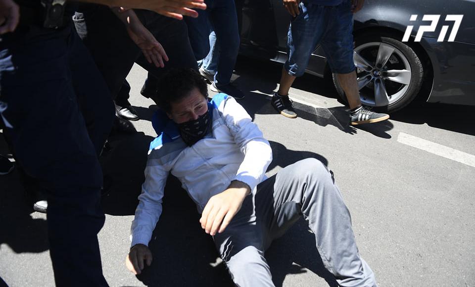 პოლიცია მოძალადეებს, რომლებიც მშვიდობიანი აქციის მიმართულებით კვერცხებს, ქვებს, ქვებით სავსე ბოთლებს, რკინის ნაჭრებს, შუშებს და სხვა ნივთებს ისროდნენ, უკვე აქტიურად აკავებდა.