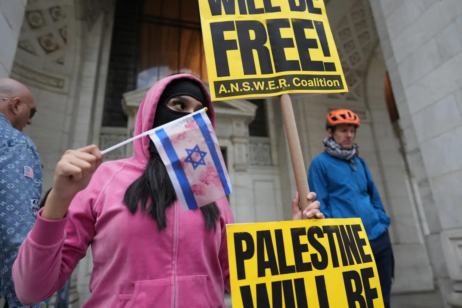 დემონსტრანტების ჯგუფმა ისრაელს ტერორისტული სახელმწიფო უწოდა და სკანდირებდნენ: "მდინარიდან ზღვამდე, პალესტინა თავისუფალი იქნება". მათ აშშ-ს პრეზიდენტსაც მიმართეს: "ბაიდენ, ვერ დაიმალები, შენ გენოციდს უჭერ მხარს".