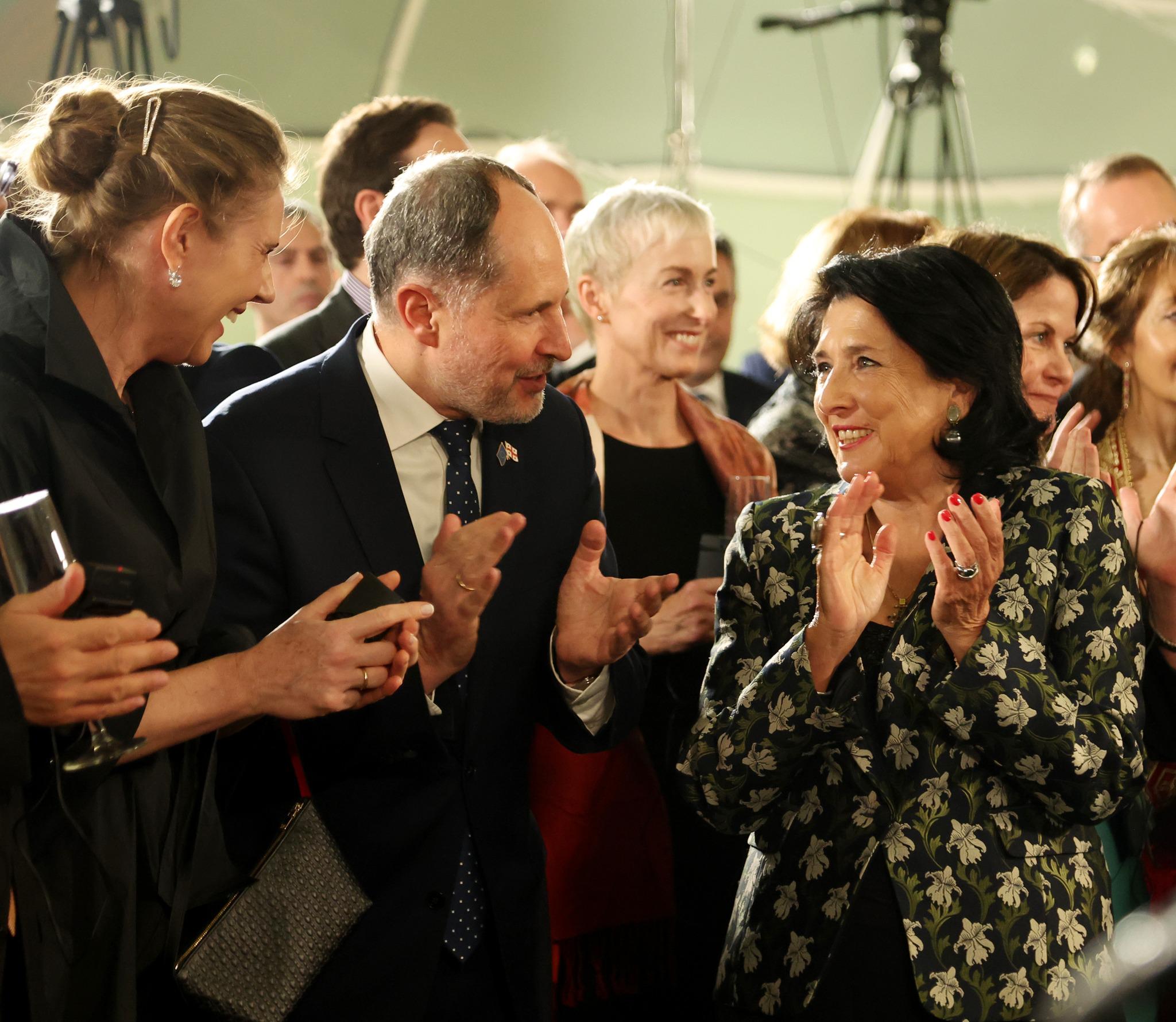 პრეზიდენტის სასახლეში შეიკრიბნენ საქართველოში აკრედიტებული დიპლომატები, პოლიტიკოსები და ევროკავშირის 27 სახელმწიფოს ელჩები.