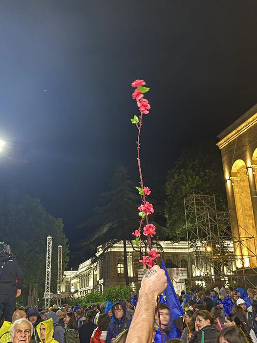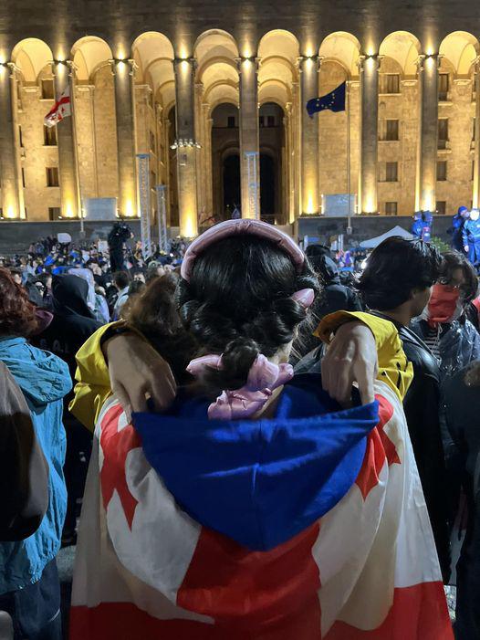 "შევიკრიბეთ და დავრჩებით ღამით, რადგან 13 მაისის დილას, ხელისუფლებას დაგეგმილი აქვს რუსული კანონის საკომიტეტო მოსმენა, მესამე მოსმენით კენჭისყრის მოსამზადებლად. ქვეყნის სიყვარულში ჩვენი დაუღალავი ერთობით - გავათენოთ ღამე ერთად და დილით, არ მივცეთ საშუალება ოცნების დეპუტატებს აუღელვებლად შევიდნენ პარლამენტის შენობაში და გააგრძელონ ხალხის ნების, ევროკავშირისა და კონსტიტუციის საწინააღმდეგო მოქმედება.