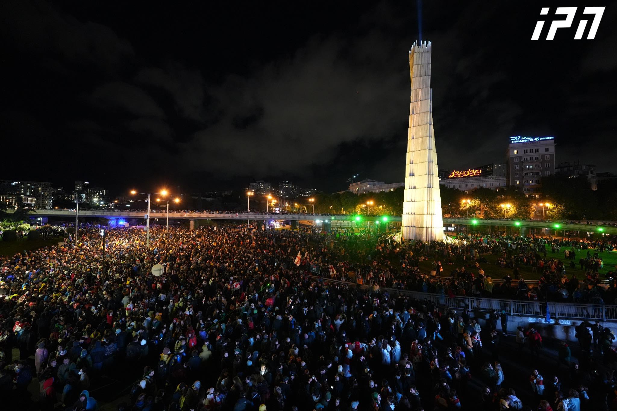 აქციის მონაწილეების ნაწილმა, რომლებიც გმირთა მოედანზე "უცხოური გავლენის გამჭვირვალობის შესახებ" კანონის მესამე მოსმენით მიღებას აპროტესტებდნენ, მსვლელობით მტკვრის მარცხენა სანაპიროზე გადაინაცვლა.
