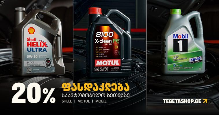MOBIL - ამ ბრენდის მთავარი უპირატესობაა ავტომობილის იდეალური დაცვა ყველა სეზონზე და ძრავის ხანგრძლივი მუშაობის უზრუნველყოფა. MOBIL-ის ზეთები უზრუნველყოფს ძრავის სისუფთავეს. გათვლილია ექსტრემალურ ტემპერატურაზე. კომპანია თანამშრომლობს ისეთ პრემიუმ ბრენდებთან, როგორებიცაა: Porsche, Mercedes-AMG, Cadillac.