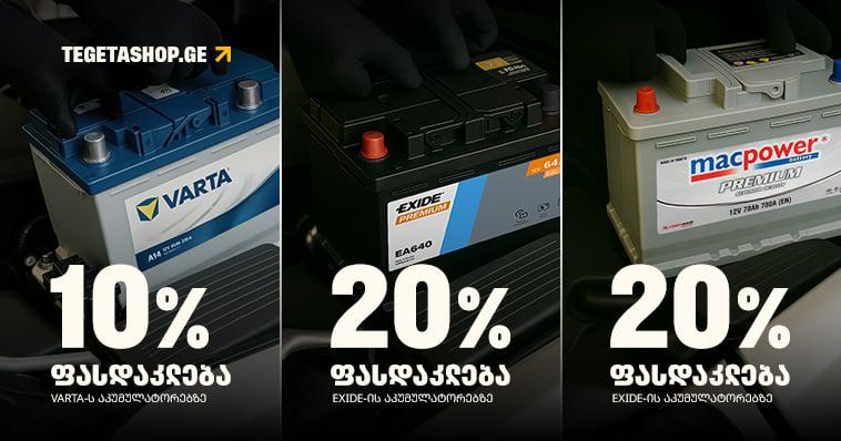 „თეგეტა მოტორსის“ ფილიალების გარდა, დამატებით შეთავაზებები მოქმედებს Tegeta Shop-ზე. საბურავებისა და ნაწილების სრულ ასორტიმენტზე ხელმისაწვდომია 10%-იანი ფასდაკლება. ამასთანავე, ფილიალებში ისარგებლებთ ჰაერისა და სალონის ფილტრის უფასოდ შეცვლის სერვისით
