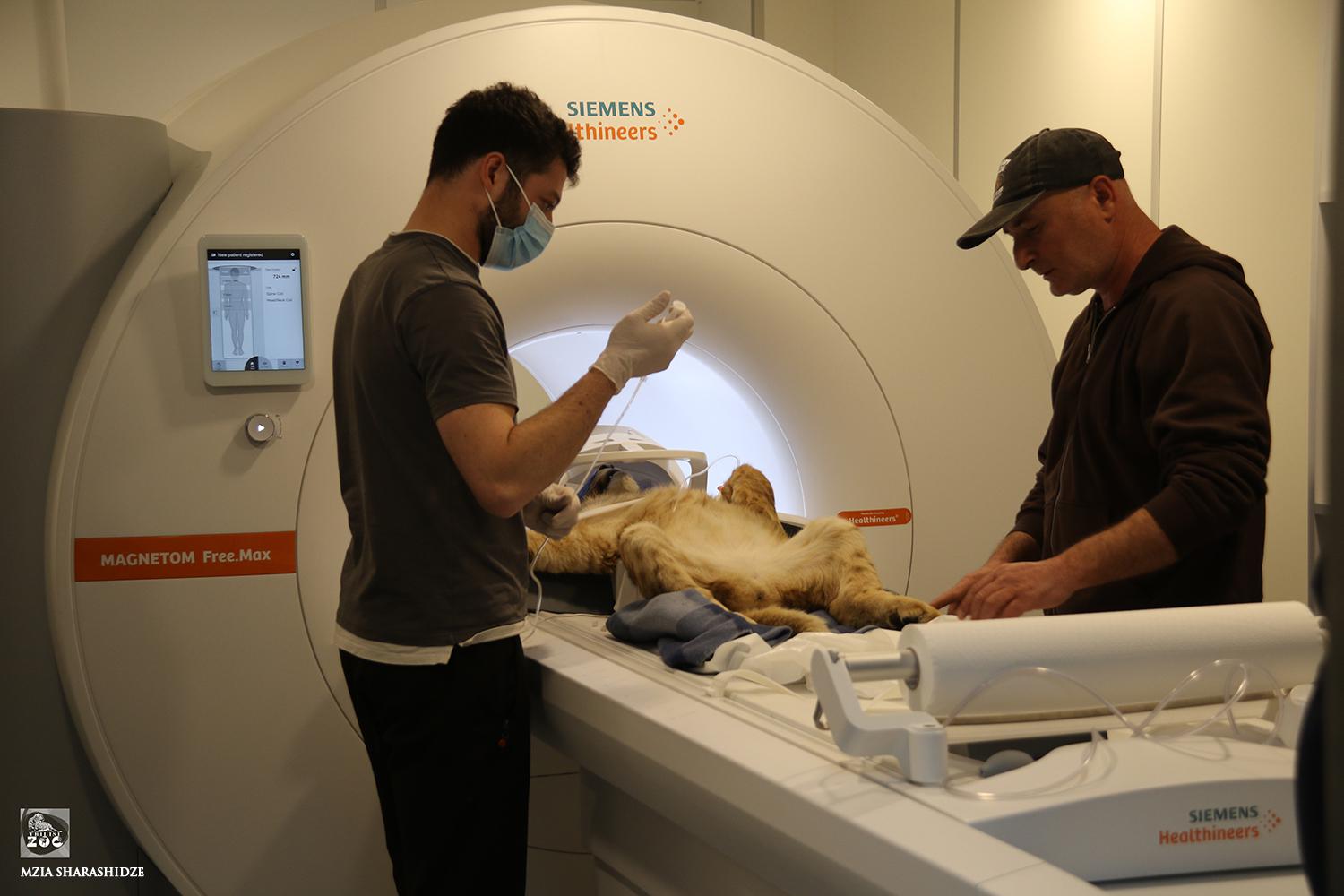 როცა უცხოელი სპეციალისტი გეუბნება, რომ საგანგაშო დიაგნოზების გამოსარიცხად ლომისთვის მაგნიტურ-რეზონანსული ან კომპიუტერული ტომოგრაფიის გადაღებაა საჭირო, მისთვის ეს უბნის მაღაზიაში ჩაცუნცულებასავით ჩვეულებრივი ამბავია, ჩვენთან კი ლამის მარსზე აცუნცულების ტოლფასი პროცედურაა. რა უნდა გვექნა? დასახმარებლად მეგობარ ექიმებს მივმართეთ - ადამიანების მკურნალ ნევროლოგებსა და ნეიროქირურგებს. საბედნიეროდ, კარგ სპეციალისტობასთან ერთად, გულისხმიერი და თანაგრძნობით სავსე პროფესიონალები არიან, რისთვისაც უსაზღვრო მადლიერებასა და აპლოდისმენტებს იმსახურებენ. აქვე, ვისარგებლებთ მომენტით და დიდ მადლობას გადავუხდით დახმარებისთვის მოკლედ, გავაქანეთ ეს ჩვენი გოგო კლინიკაში. დავაძინეთ და MRT აპარატში შევაგორეთ. იქაც, ხომ არ გგონიათ, წევს და სძინავს არხეინად, სანამ გადაუღებენ. სულ თავზე უნდა ედგას ვეტექიმი, რომელიც გააკონტროლებს წნევას, პულსს, საიმობოლიზაციო პრეპარატის მოქმედებას; დაუმატებს დოზას, თუ ამჩნევს, რომ იღვიძებს და მოძრაობას იწყებს, თანაც ამ ყველაფერს ისე დააბალანსებს, რომ ცხოველს პრობლემა არ შეექმნას და გამოღვიძება არ გაუჭირდეს. აქვე არ შეიძლება არ დავიკვეხნოთ, რომ ისეთი ვეტექიმები გვყავს თბილისის ზოოპარკში, ბარე ბევრ უცხოურ გაფუფუნებულ ზოოპარკს შეშურდება.