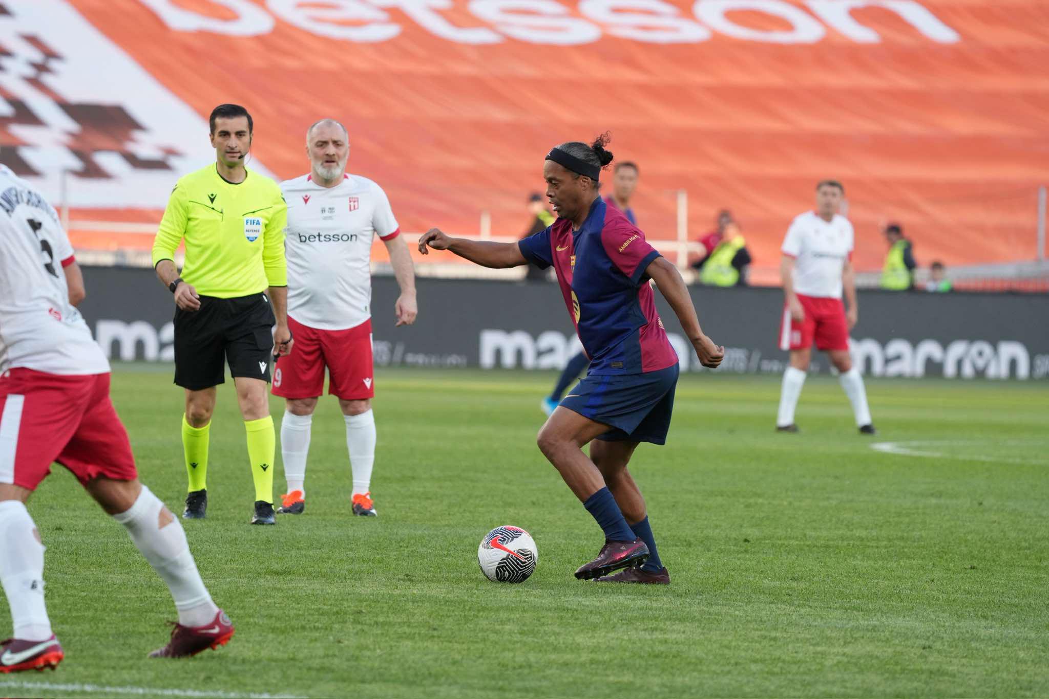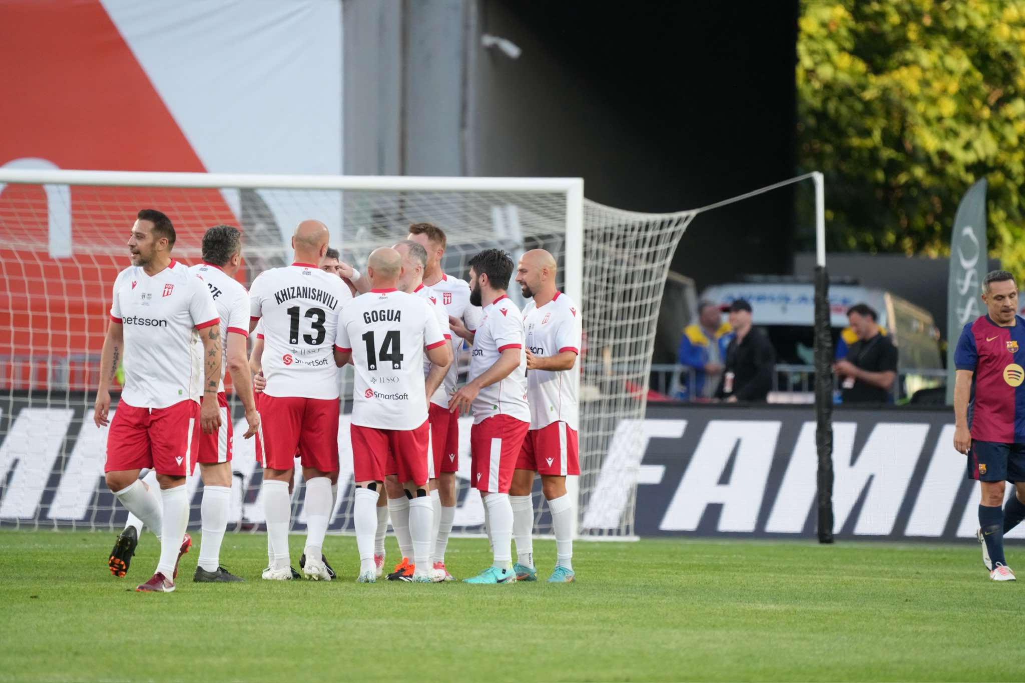 "დინამო არენაზე" "ბარსელონას" ლეგენდებისა და GEO11-ის მატჩი ჩატარდა, რომელიც სტუმართა გუნდის გამარჯვებით დასრულდა - 1:3.