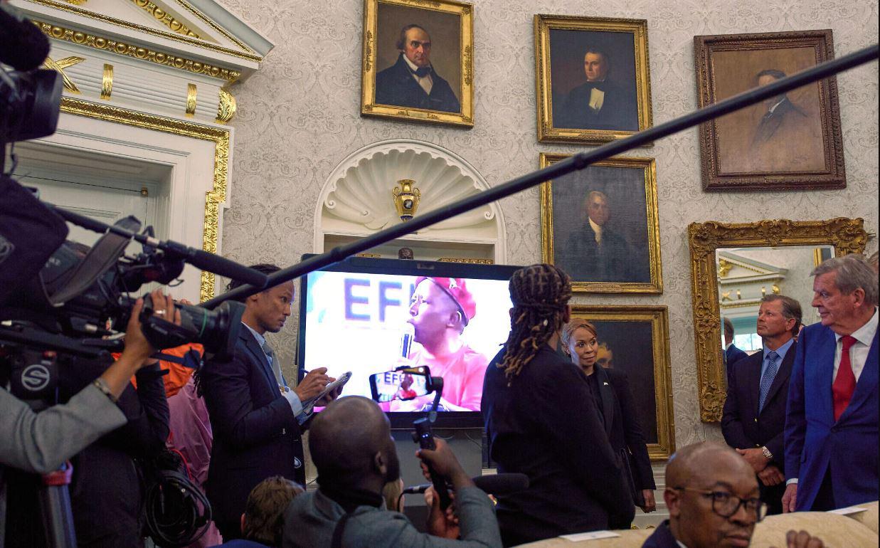ვითარება მას შემდეგ დაიძაბა, რაც აშშ-ის პირველმა პირმა განაცხადა, რომ სამხრეთ აფრიკაში არსებული ვითარების შესახებ "ათასობით ისტორია“ და "დოკუმენტური ფილმი“ არსებობს. მან თავის თანამშრომლებს ოვალურ კაბინეტში შუქების ჩაქრობა სთხოვა და 4-წუთიანი ვიდეო ჩართეს, რომელშიც აფრიკის ულტრამემარცხენე ოპოზიციის ლიდერი ჯულიუს მალემა ამომრჩევლებთან შეხვედრისას მღეროდა - "მოკალი ბური, მოკალი ფერმერი“. მასთან ერთად მღეროდნენ შეკრებილებიც.