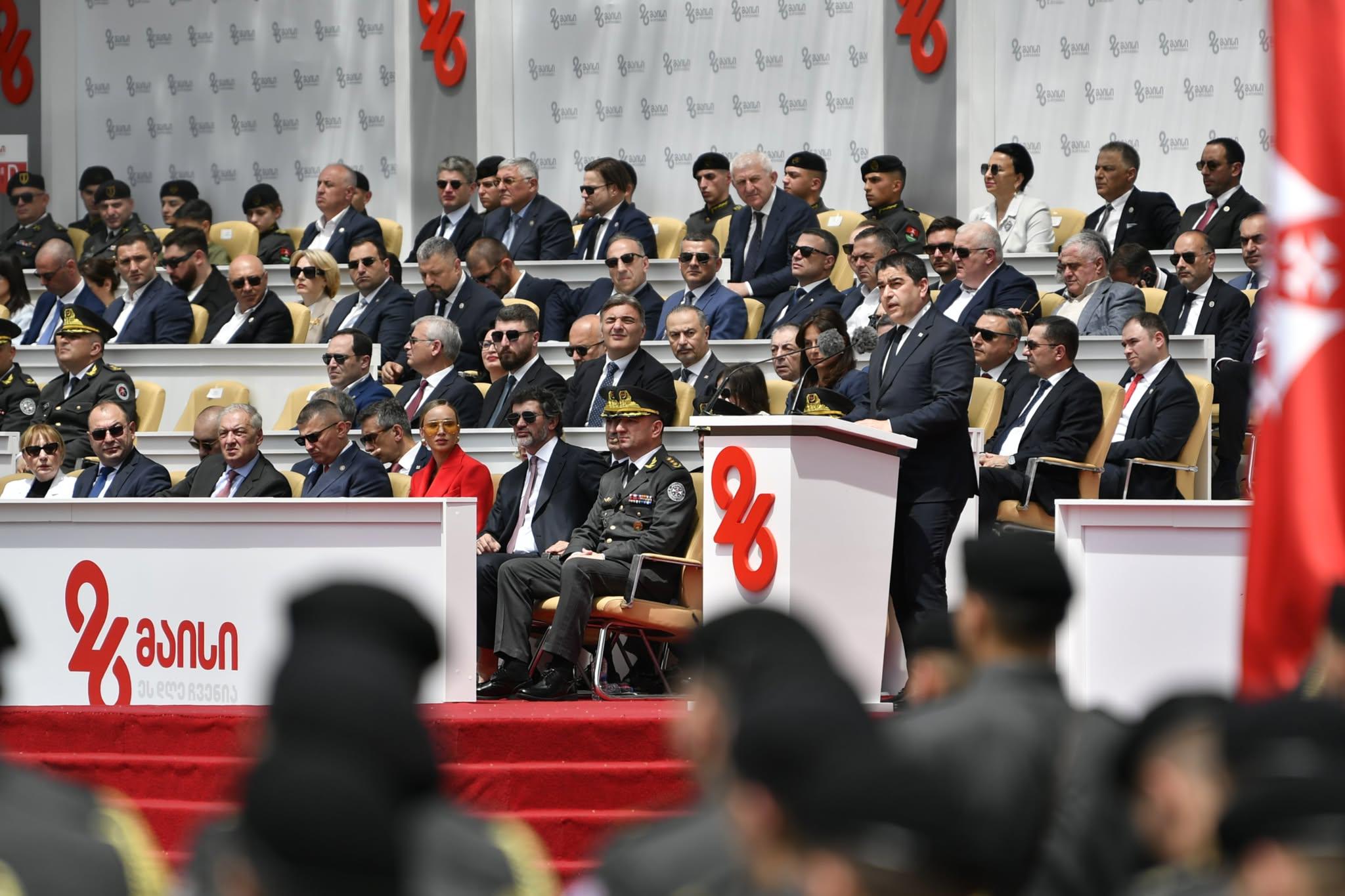თავისუფლების მოედანზე, სამხედრო მომსახურეთა ფიცის დადების ცერემონიას, საზოგადოებასთან ერთად ხელისუფლების წარმომადგენლები დაესწრნენ და ქვეყნის მოსახლეობას საქართველოს დამოუკიდებლობის დღე მიულოცეს.