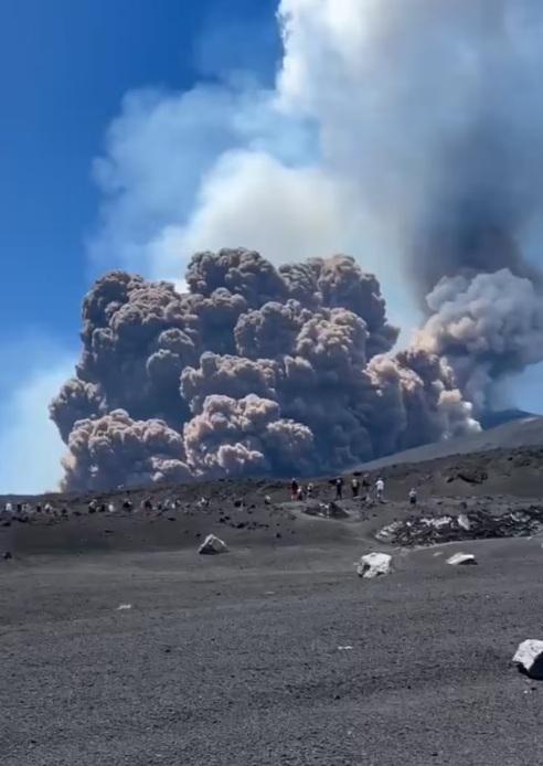 იტალიის გეოფიზიკისა და ვულკანოლოგიის ეროვნული ინსტიტუტის (INGV) ცნობით, ამ ადგილას დღეს დილით რამდენიმე "მზარდი ინტენსივობის" აფეთქება დაფიქსირდა.