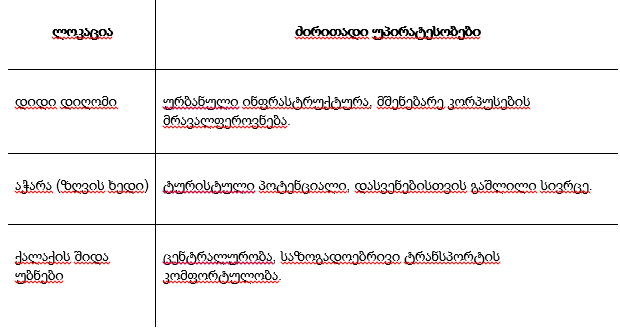 სრულიად განსხვავებულ ფასობრივ დინამიკას ვხედავთ აჭარაში. ისეთი ლოკაციები, როგორიცაა ბათუმი, გონიო ან კვარიათი, უკვე წლებია რაც იზიდავს როგორც ადგილობრივ, ისე უცხოელ მყიდველებს. ბუნებრივია, ბინების ღირებულება მნიშვნელოვანწილად განისაზღვრება იმით, აქვს თუ არა ბინას ზღვის ხედი. მაგალითად, ბათუმში ან მწვანე კონცხზე მდებარე მშენებარე კომპლექსში ბინა ზღვის ხედით გაცილებით ძვირად ფასობს, ვიდრე ანალოგიური მახასიათებლების ბინა ქალაქის შიდა უბანში.