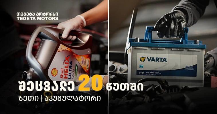 „თეგეტა მოტორსის“ ფილიალები მთელი ქვეყნის მასშტაბით მზად არის, მიიღოს მომხმარებელი და ზეთის, აკუმულატორისა და საბურავის შეცვლის სერვისი უპრეცედენტოდ მცირე დროში შეასრულოს.
