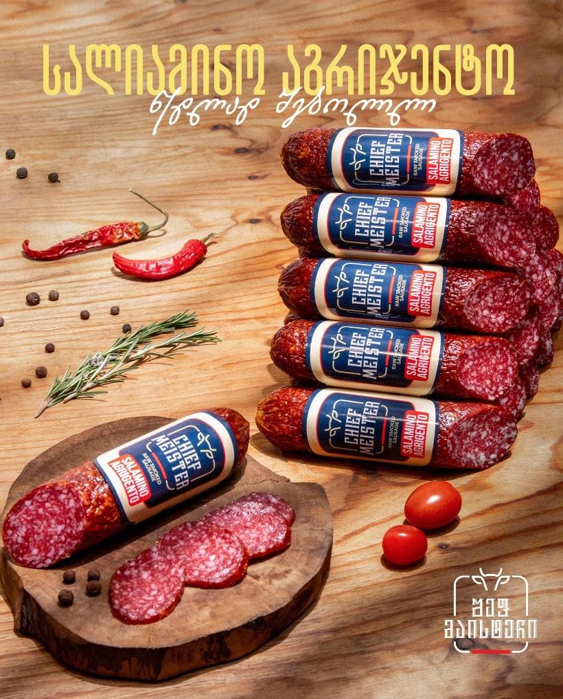 - სალიამინო აგრიჯენტო - სიცილიის შთაგონებით შექმნილი ძეხვი, მდიდარი არომატით და მკვრივი ტექსტურით. მომზადებულია თერმული დამუშავების გარეშე, ბუნებრივი შრობით.