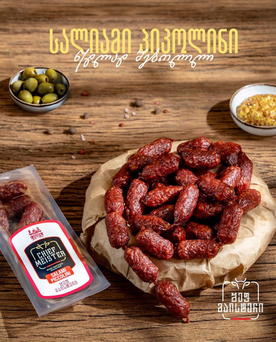 - სალიამი პიკოლინი – მცირე ზომის გემრიელი ძეხვი, იდეალური პიკნიკის ან ოჯახური შეხვედრებისთვის. გემოს პრაქტიკული არჩევანი, რომელიც ყოველთვის შეგიძლია თან გქონდეს.