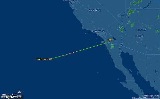 მალე, ოთხადგილიანმა თვითმფრინავმა რამდენიმე წუთის განმავლობაში დასავლეთით, კურსიდან გადაუხვია და წყნარ ოკეანეში, სან-დიეგოს სანაპიროდან დაახლოებით 470 მილის დაშორებით ჩავარდა.