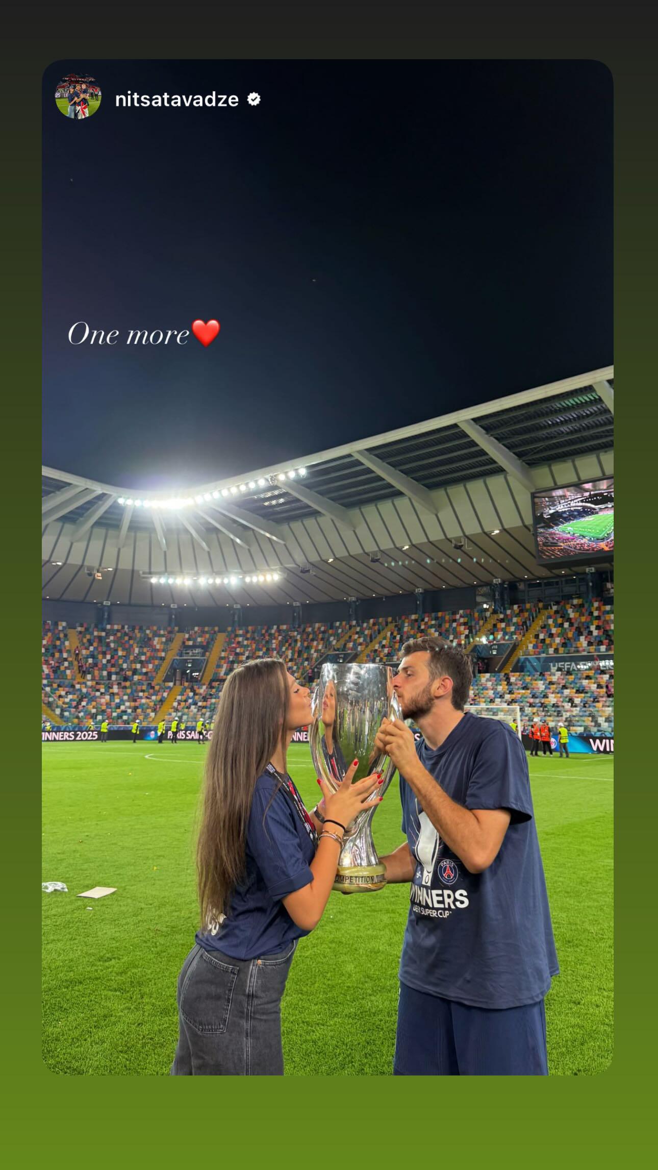 ქართველმა ფეხბურთელმა კი, რომელმაც ისტორიაში პირველად მოიგო სუპერთასი, გამარჯვება გუნდთან და მეუღლესთან ერთად აღნიშნა. ნიცა თავაძე პატარა დამიანესთან ერთად ხვიჩა კვარაცხელიას ლამის ყველა თამაშს ესწრება. "კიდევ ერთი" - წერს ხვიჩა და ფოტოებს აქვეყნებს, რომელიც კიდევ ერთი გამარჯვების შემდგომ ემოციებს ასახავს.