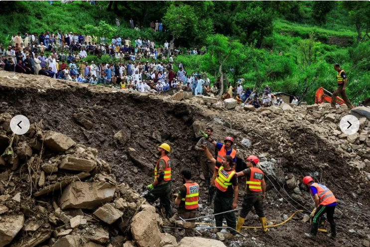 წყალდიდობები და მეწყრები პაკისტანის ჩრდილო-დასავლეთის მთიან ზონაში უჩვეულოდ უხვი მუსონური წვიმების შედეგია, როგორც NDMA-ს (პაკისტანის ეროვნული კატასტროფების მართვის უწყების) ხელმძღვანელმა, გენერალმა ინამ ჰაიდერ მალიკმა განაცხადა, ქვეყნის მასშტაბით ივნისის ბოლოდან 25,000-ზე მეტი ადამიანის გადარჩენა მოხერხდა, ხოლო დაღუპულთა რიცხვმა 695-ს მიაღწია.
