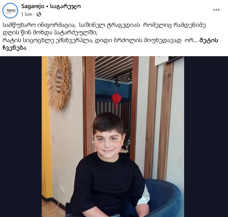 “სამწუხარო ინფორმაცია, საშინელ ტრაგედიას რომელიც რამდენიმე დღის წინ მოხდა პატარძეულში, რატის სიცოცხლე ემსხვერპლა.