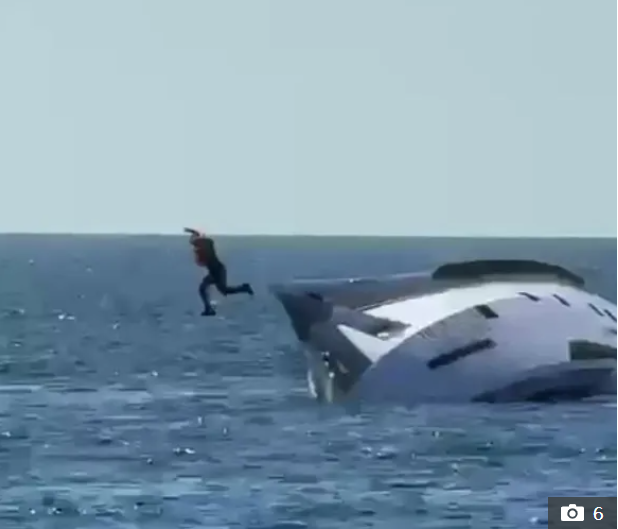 კადრებში ასევე ჩანს მგზავრი, რომელიც უკვე ნახევრად ჩაძირული იახტაზე ცდილობს აძრომას.