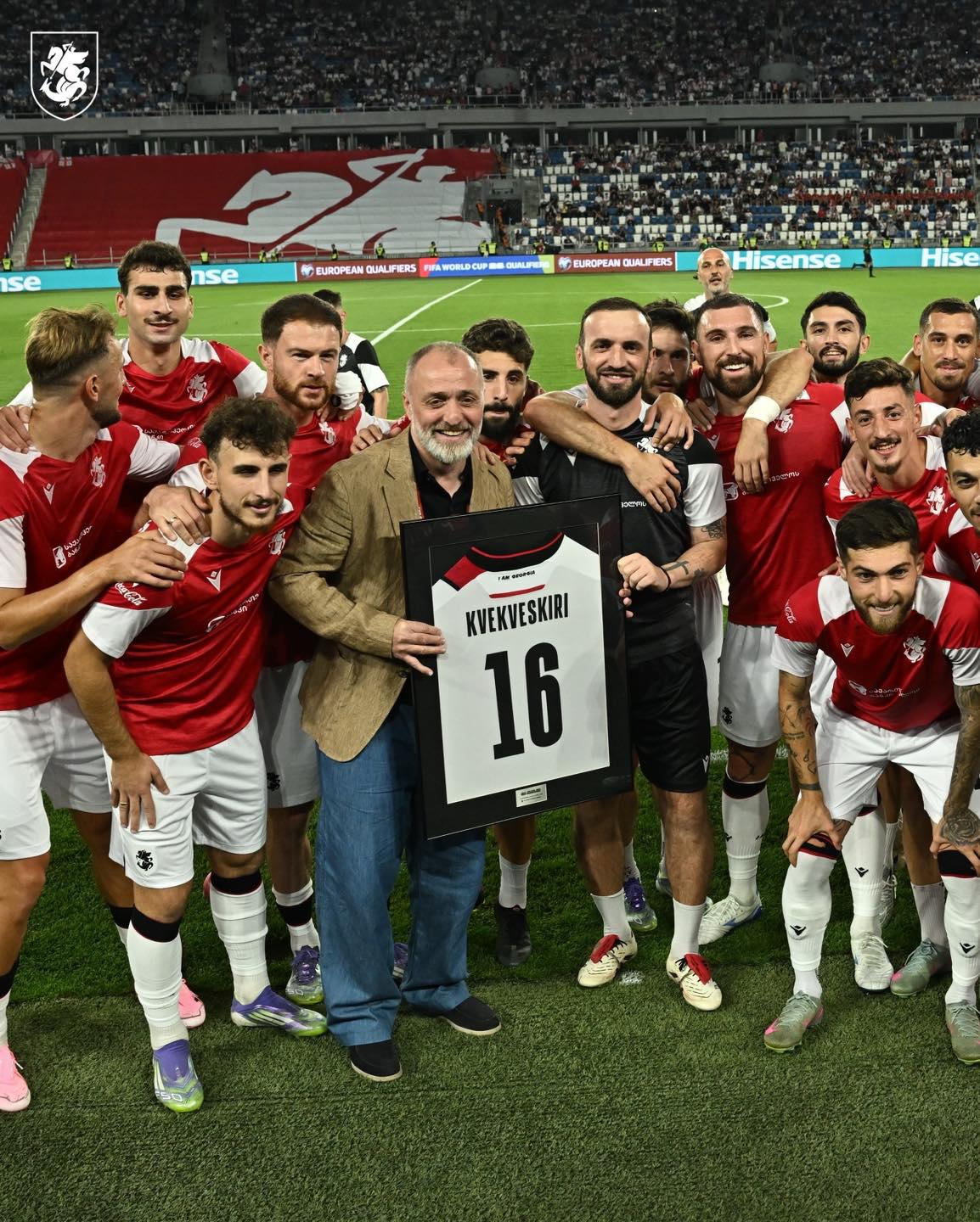 მატჩის დაწყებამდე, 19:45 საათიდან, დინამო არენაზე, ნიკა კვეკვესკირის გაცილების ცერემონია გაიმართა. ის მუშაობას ეროვნული ნაკრების საწვრთნელ შტაბში აგრძელებს.