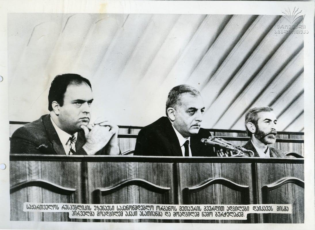 - წინა ღამეს არ დამეძინა, სვეტიცხოველში წავედი, ვილოცე. ჩამოვედი და დილით ჩამთვლიმა, შემოვიდა ბატონი ზვიადის თანაშემწე და სად ხარ, ბატონი ზვიადი გელოდებაო. სად ხარ გენაცვალე, ასეთ რამეზე აგვიანებო?! უცნაირი განწყობა იყო, საზეიმოც არა, საქმიანი, სპორტსმენებს რომ აქვთ ხოლმე დიდი მატჩების წინ, დაახლოებით ასეთი. თან მშვიდი ხარ და თან შინაგანი ამაღლების გრძნობა გაქვს... ღმერთმა მართლა მოწყალება უნდა მოიღოს შენზე, რომ ასეთ დოკუმენტს ხელი მოაწერო...