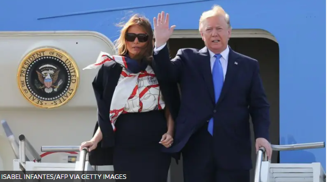 ტრამპი, რომელსაც მოგზაურობისას თან მეუღლე, მელანია ახლავს, დიდ ბრიტანეთში Boeing 747-200B თვითმფრინავით ჩაფრინდა, რომელიც უფრო Air Force One („ბორტი №1“) სახელითაა ცნობილი.