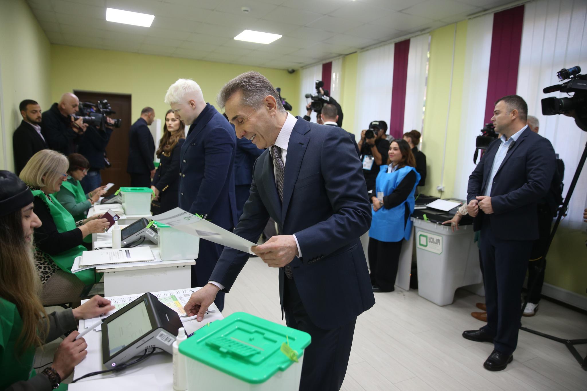 პრემიერ-მინისტრი ირაკლი კობახიძე და პარლამენტის თავმჯდომარე შალვა პაპუაშვილი საარჩევნო უბანზე მარტო მივიდნენ.