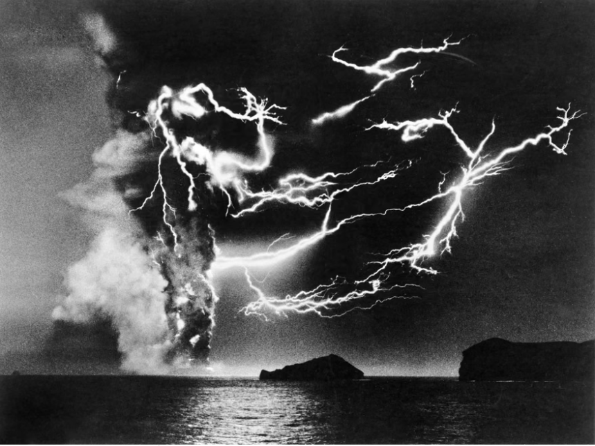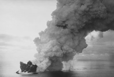 განთიადისას მთლიანი ცა ფერფლით დაიფარა, ხოლო წყლის ზედაპირიდან ამაღლებული, ქედის ფორმის მასა ამოიზარდა, რომელიც მეორე დილით უკვე 10 მეტრის სიმაღლის იყო. კიდევ ერთ დღეში მისი სიმაღლე 40 მეტრს შეადგენდა...