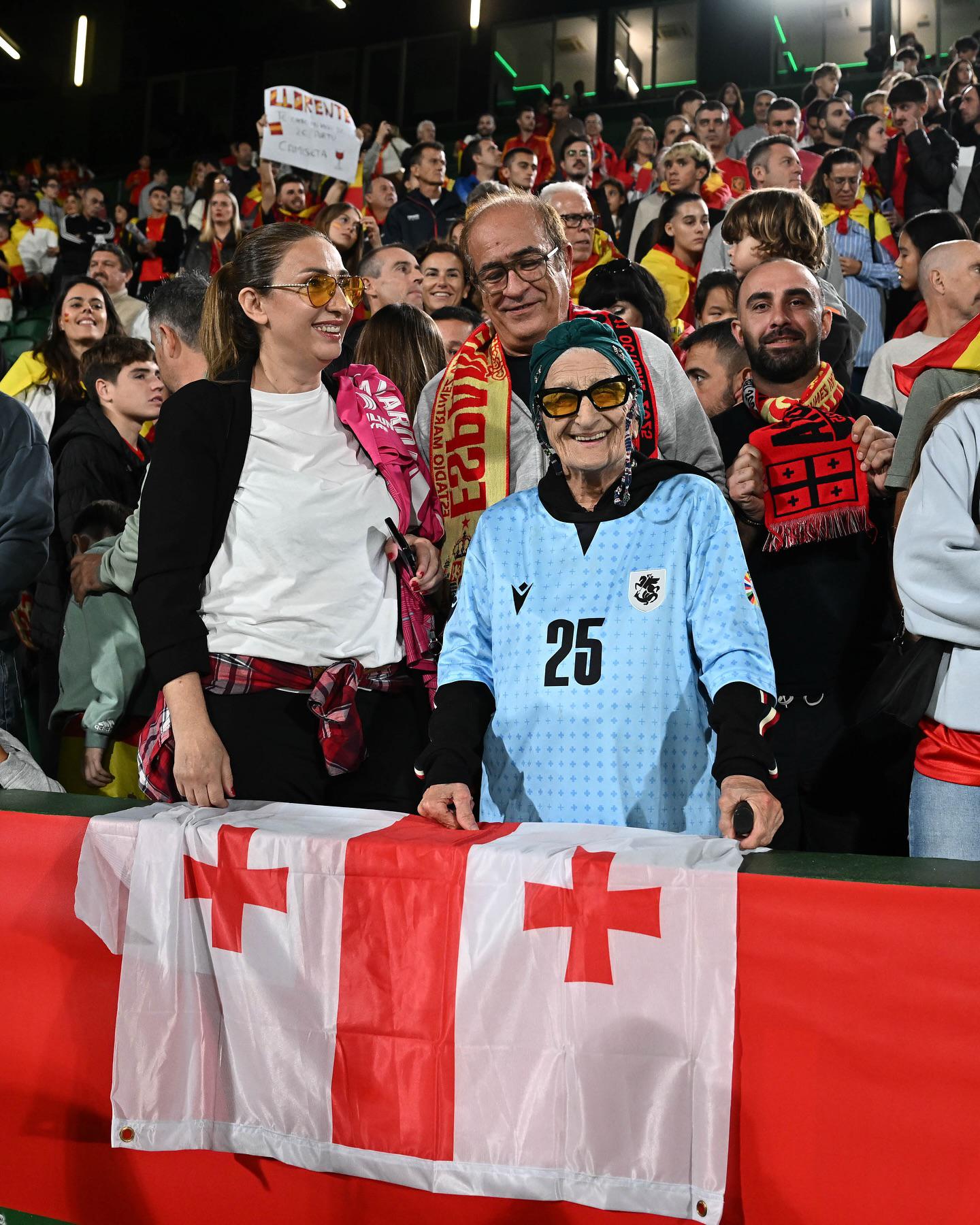 ეს ამბავი 94 წლის ანერი გუმბერიძე-ჯაფარიძეზეა, რომელიც ორი დღის წინ, ესპანეთში, ქართველ გულშემატკივრებთან ერთად საქართველოსა და ესპანეთის საფეხბურთო ნაკრებების დაპირისპირებას დაესწრო. ქალბატონი ანერი, რომელსაც მხრებზე საქართველოს დროშა აქვს მოსხმული და ქართველი მეკარის, გიორგი მამარდაშვილის მაისური აცვია, საქართველოს სიყვარულისა და ენერგიის საოცარი მაგალითია.