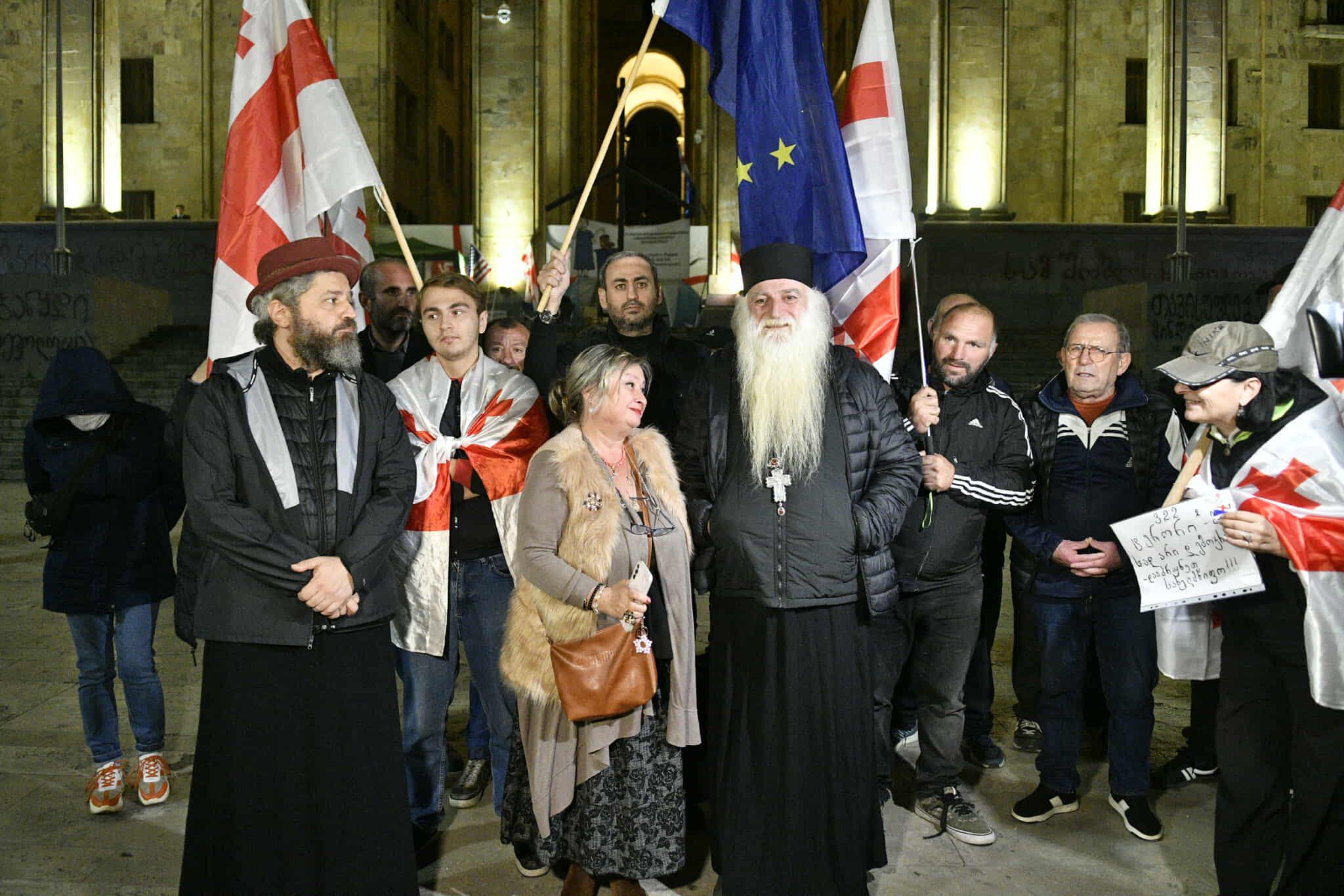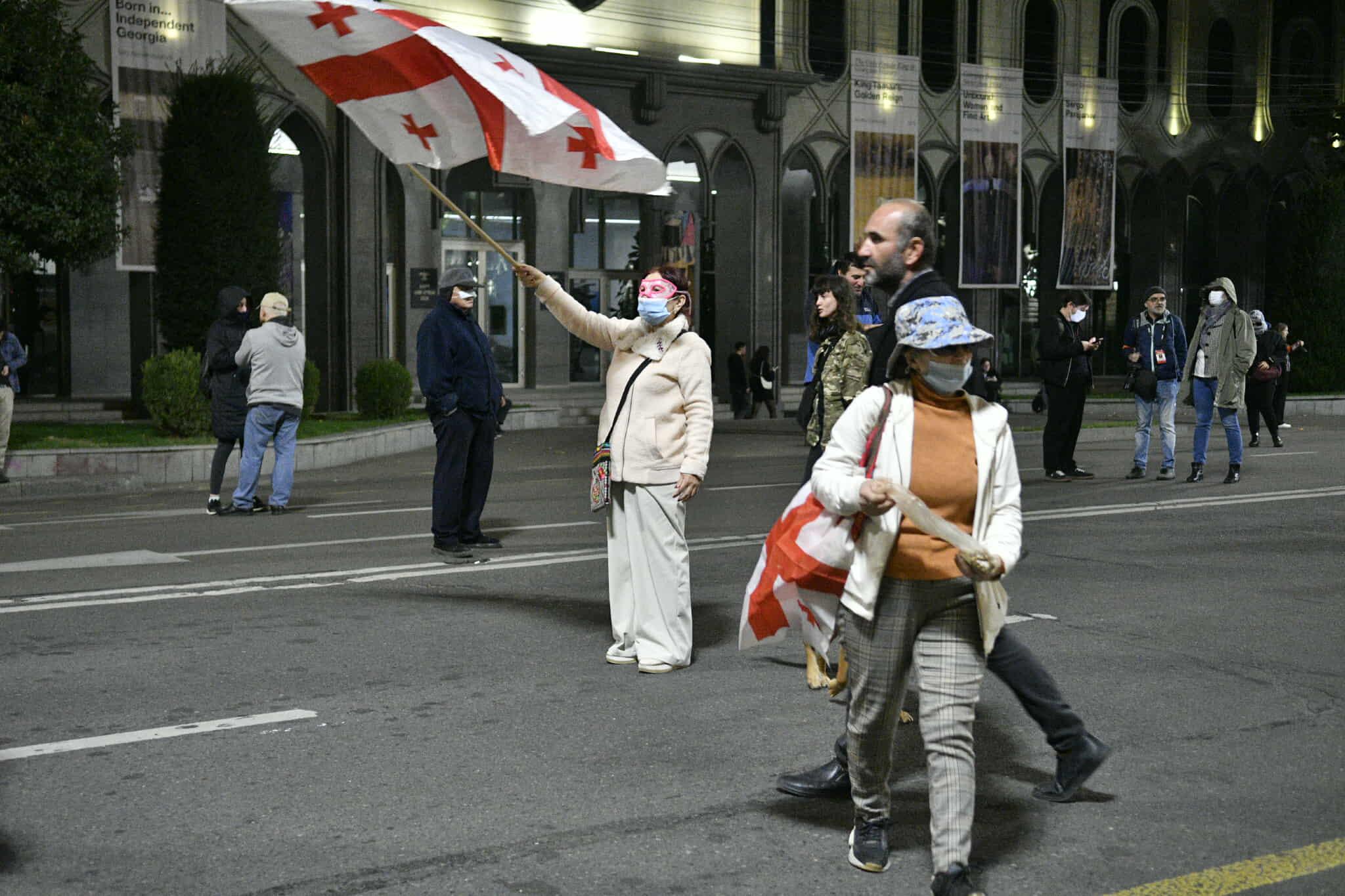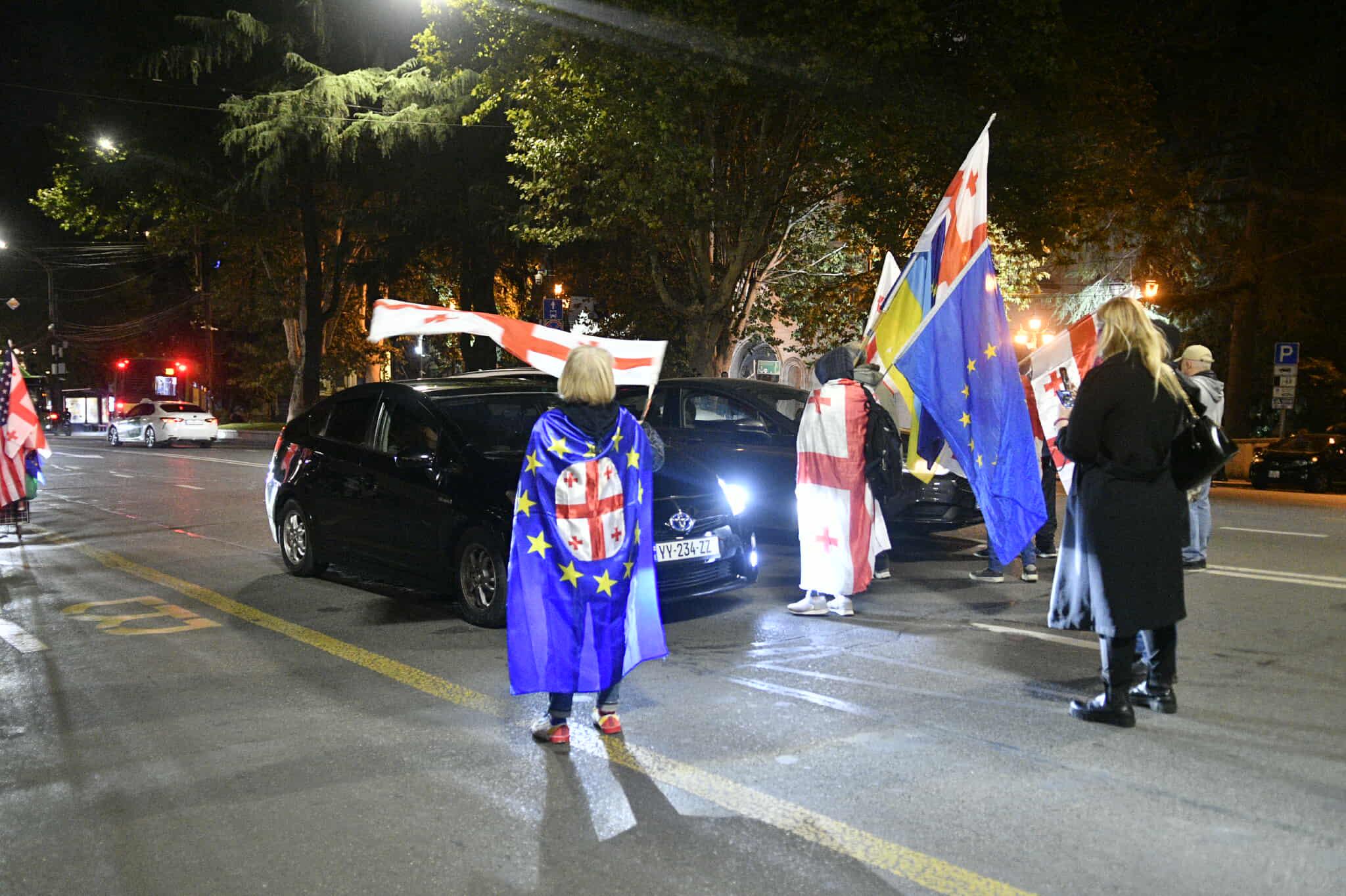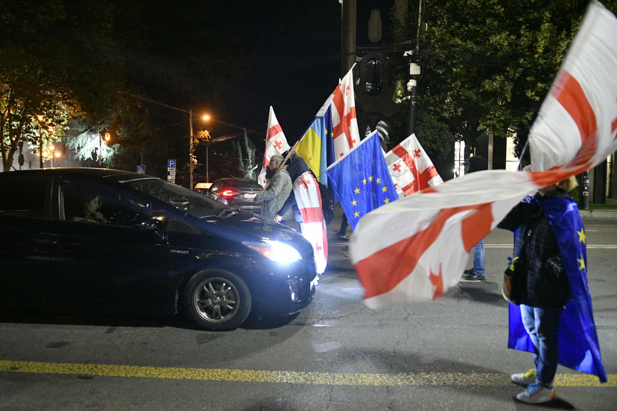 ადგილზე შეკრებილთა მოთხოვნები უცვლელია - დაინიშნოს ახალი არჩევნები და გათავისუფლდნენ პროტესტის ფარგლებში დაკავებული პირები. დემონსტრანტებს საკანონმდებლო ორგანოსთან საქართველოსა და ევროკავშირის დროშები აქვთ მოტანილი.