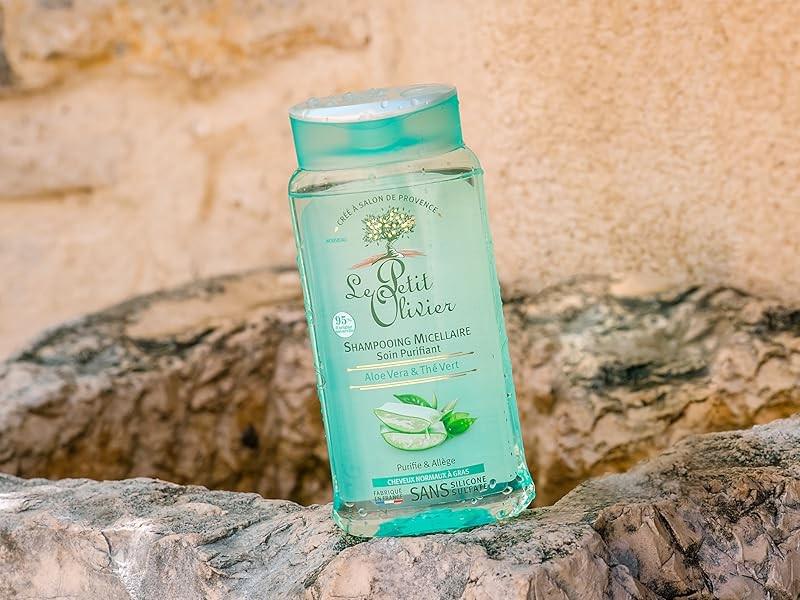 Le Petit Olivier-ის გამწმენდი კონდიციონერი ალოე ვერასა და მწვანე ჩაის ექსტრაქტით, ასუფთავებს და მატებს ბზინვარებას ნორმალურ და ცხიმიან თმას, ხელს უწყობს ჭარბი ცხიმის შემცირებას.