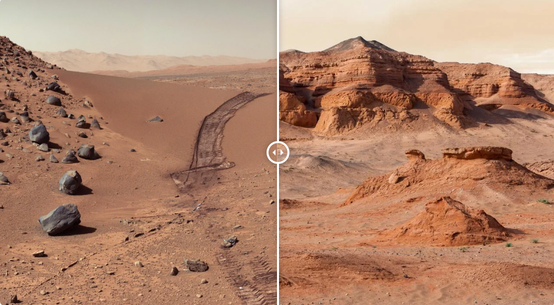 დედამიწაზე არცერთი ადგილი არ ჰგავს მარსის გეოგრაფიასა და კლიმატს ისე, როგორც მონღოლეთის გობის უდაბნო - მშრალი, უკაცრიელი: +45-დან -40°C-მდე უკიდურესი ტემპერატურული ცვლილებებით. მიწა რკინის ოქსიდითაა შეღებილი, რაც მას წითელ შეფერილობას და საოცრად იერს აძლევს.