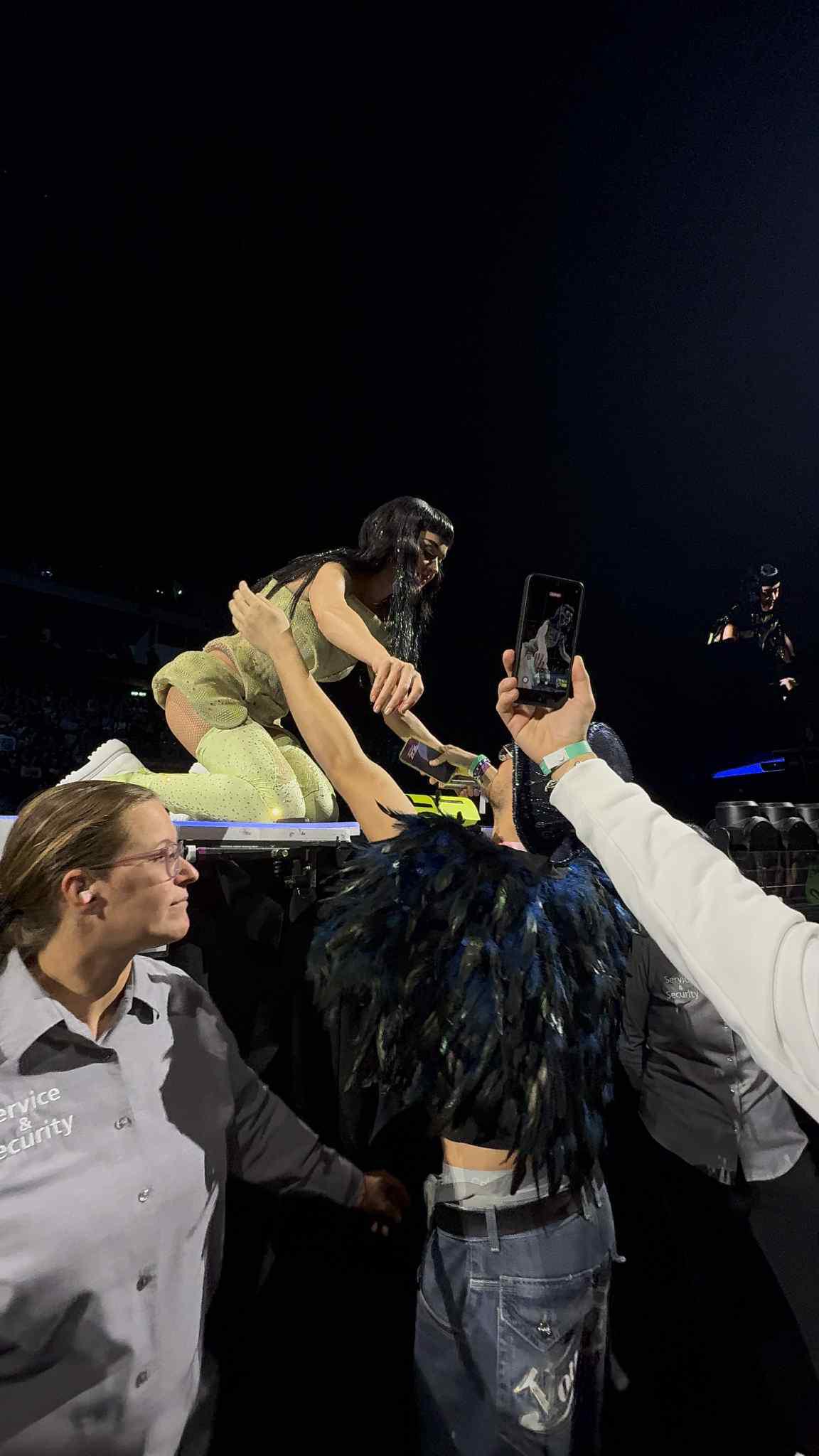 გარდა ამისა, ვიცოდი, რომ ერთ-ერთი სიმღერის "last friday night" პერფორმანსის დროს, ერთ-ერთ გულშემატკივარს ართმევდა ტელეფონს და ამით იღებდა. სწორედ იმ ადგილას დავდექი, სადაც ვიცოდი, რომ ფანს ტელეფონს გამოართმევდა. სწორედ მე ვიყავი ის ბიჭი, ვისაც იმ ღამით ტელეფონი გამოართვა.