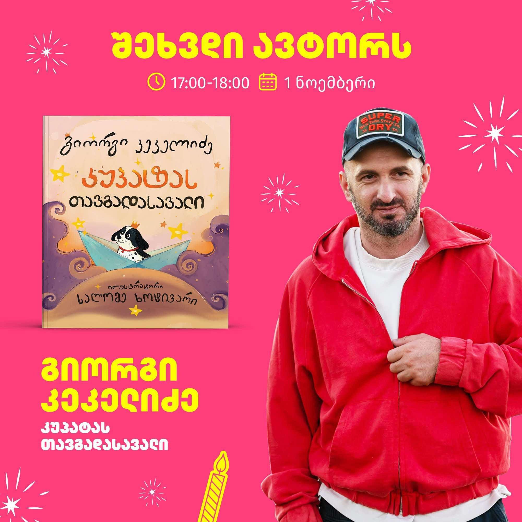 ბავშვების მეგობრის, კუპატას უცნობი თავგადასავლების შესახებ თავად ავტორი, გიორგი კეკელიძე გიამბობთ, 1-ელ ნოემბერს, 17:00-დან 18:00 საათამდე, „თბილისი მოლში“, სადაც წიგნიც დაგხვდებათ, მხიარული ილუსტრაციებითა და სათამაშოთი.