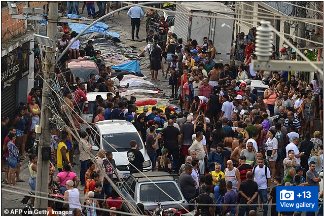 ოთხშაბათ დილით, რიო-დე-ჟანეიროს ფაველა პენიის კომპლექსის ქუჩებში (ქალაქის უღარიბესი რაიონები) ათეულობით ცხედარი იყო გამოფენილი, ეს არის ქალაქის ისტორიაში ყველაზე მომაკვდინებელი საპოლიციო ოპერაციის შედეგი, რომელიც ერთ-ერთი გავლენიანი ბანდის წინააღმდეგ იყო მიმართული.