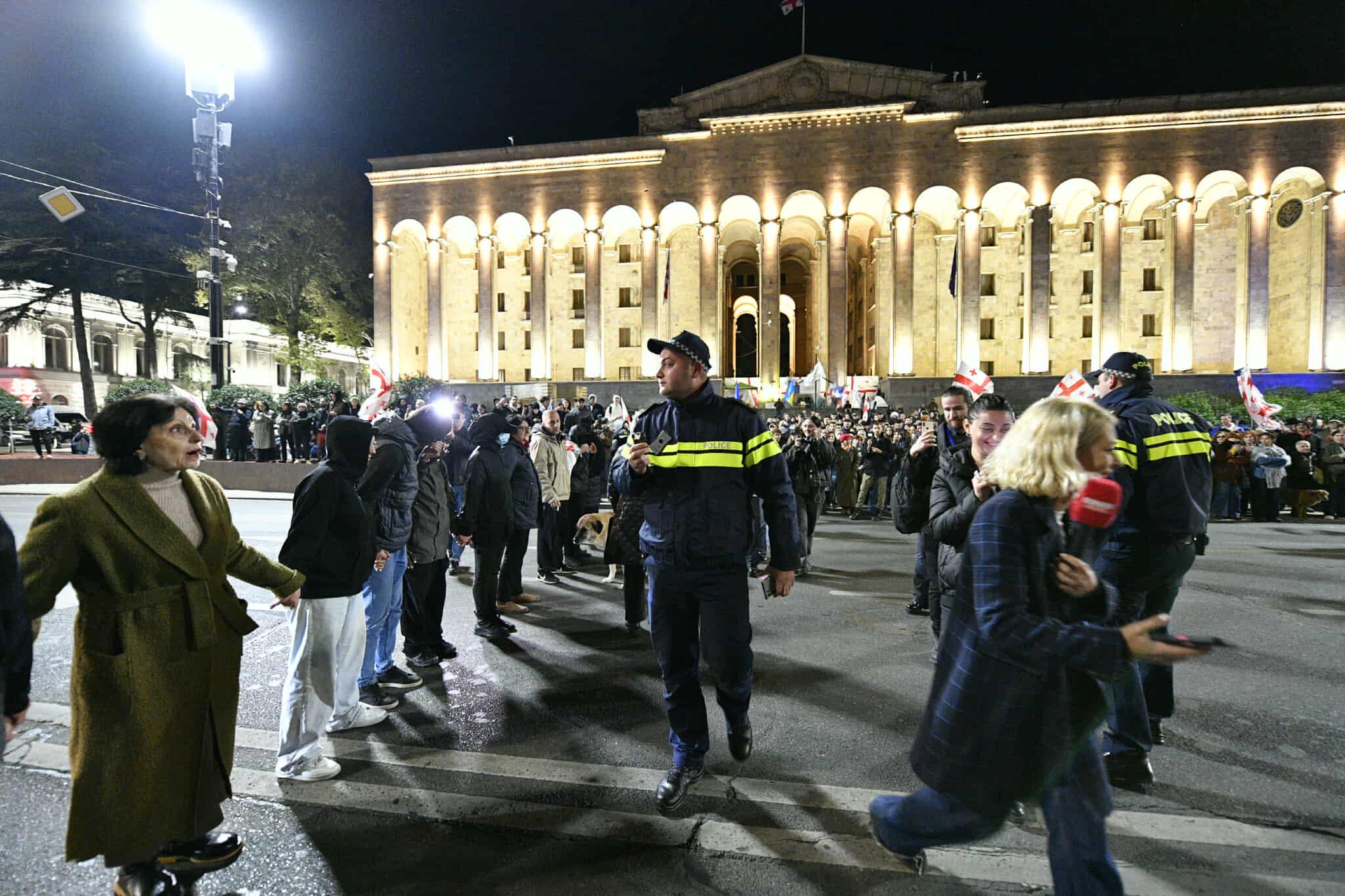 აქციის მონაწილეები საკანონმდებლო ორგანოსთან მობილიზებულ სამართალდამცველებს მოუწოდებენ, რომ „გაბედონ და ხალხის მხარეს გადმოვიდნენ“.