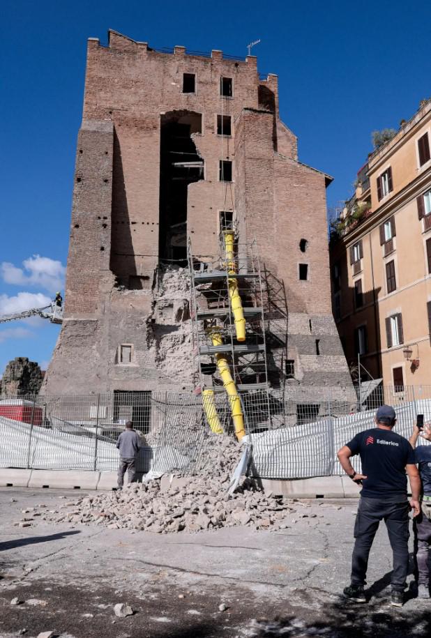 რომში შუა საუკუნეების ისტორიული კოშკი ჩამოინგრა, არიან დაშავებულები.