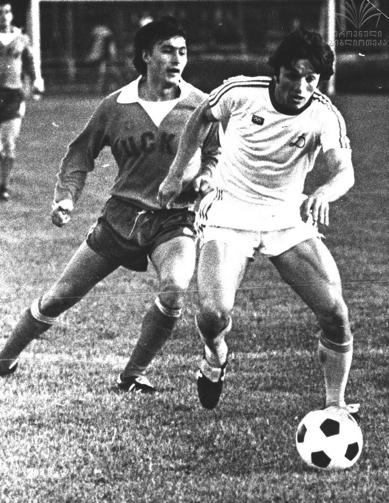 - 1978 წელს უეფას თასის გათამაშებაში ჩავებით. 13 სექტემბერს თბილისში ოთხმოცდაათი ათასი მაყურებლის თვალწინ იტალიის "ნაპოლის" 2:0 ვძლიეთ. განმეორებით მატჩი 27 სექტემბერს გვქონდა ნეაპოლში. დღე დღეზე მეორე შვილს ველოდებოდი, მაგრამ იტალიაში წაუსვლელობა როგორ იქნებოდა. ნეაპოლში რომ ჩავედით, ბიჭებს ვუთხარი, თუ ვაჟი დაიბადება, ჩვენი გუნდიდან იმის სახელს დავარქმევ, ვინც პირველ ბურთს გაიტანს-მეთქი. "სან-პაოლოს" სტადიონზე ჩვენი შეხვედრის საყურებლად 75.000 ათასი მაყურებელი მოვიდა. მატჩის 64-ე წუთზე კანთელაძე-გუცაევის დაწყებული კომბინაცია მარცხენა ფრთაზე ქორიძემ გააგრძელა და მახვილი კუთხიდან დაარტყა ბურთი კარისკენ. კასტელინიმ მოგერიებულ ბურთს საჯარიმოში მე მივისწარი და ცარიელ კარში გავიტანე... მერე პირობაც შევასრულე.