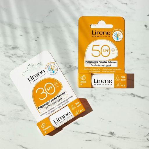 პოლონური დერმატოლოგიური ბრენდის, „ლირენეს“ დამცავი ტუჩის ბალზამი SPF 50, ნუშის ზეთის, შის კარაქისა და E ვიტამინის შემცველობის წყალობით, ინტენსიურად ატენიანებს, კვებავს და აღადგენს ტუჩის კანს, ამასთან უზრუნველყოფს მაღალი UVA და UVB დაცვას მთელი წლის განმავლობაში.