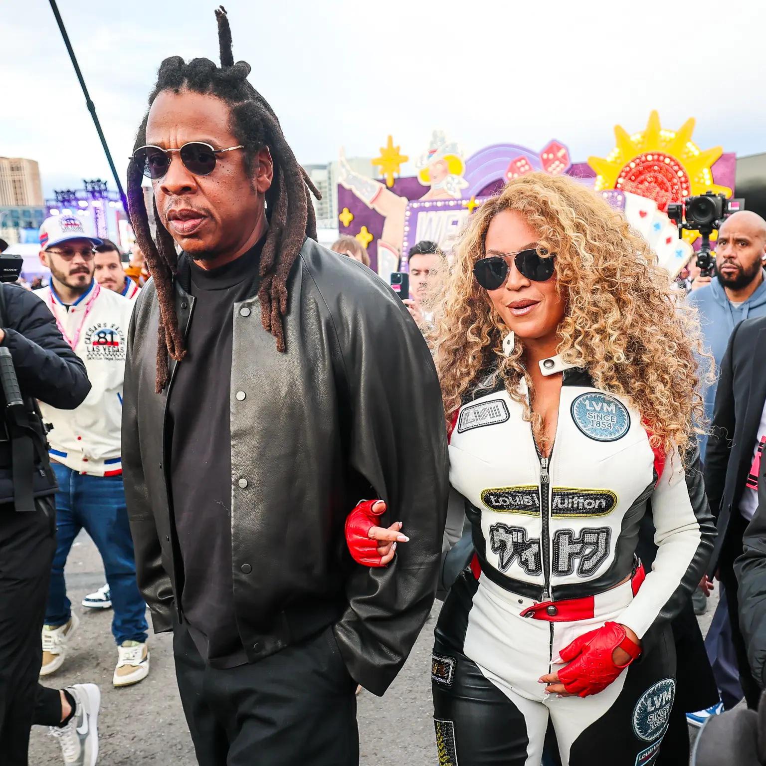 სოციალურ ქსელში გავრცელებულ ფოტოებში მომღერალი მრბოლელის ფორმაშია და ქმართან, ჯეი-ზისთან ერთად ხელჩაკიდებული ჩანს. ბიონსეს მრბოლელის ტყავის კომბინიზონი შავი და წითელი დეტალებით იყო გაფორმებული და მკერდთან კრისტალის Louis Vuitton-ის ლოგო ჰქონდა.