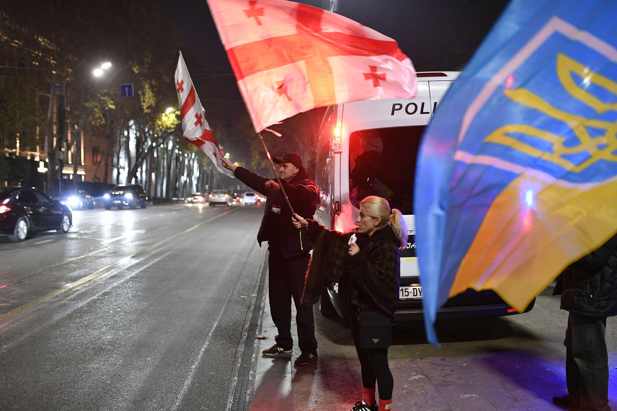 მოქალაქეები ადგილზე საქართველოსა და ევროკავშირის დროშებით არიან წარმოდგენილი.